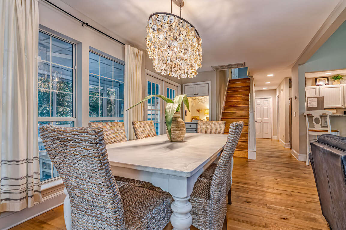 Really tastefully decorated and clean. Loved the couch and upstairs “kids room” because it was cozy and attractive! We found it good for social distancing entertaining bc of all the porch space. It was also very well stocked with everything we needed+. The house was pretty private being surrounded mostly by trees. (All but one corner on the porch) .It was a good location to get to any part of the island. Tiny suggestion- the railing going to the “kids room” needs to be cleaned or maybe sanded and cleaned. There is a stickiness to it that did not wipe away. I would totally stay here again.