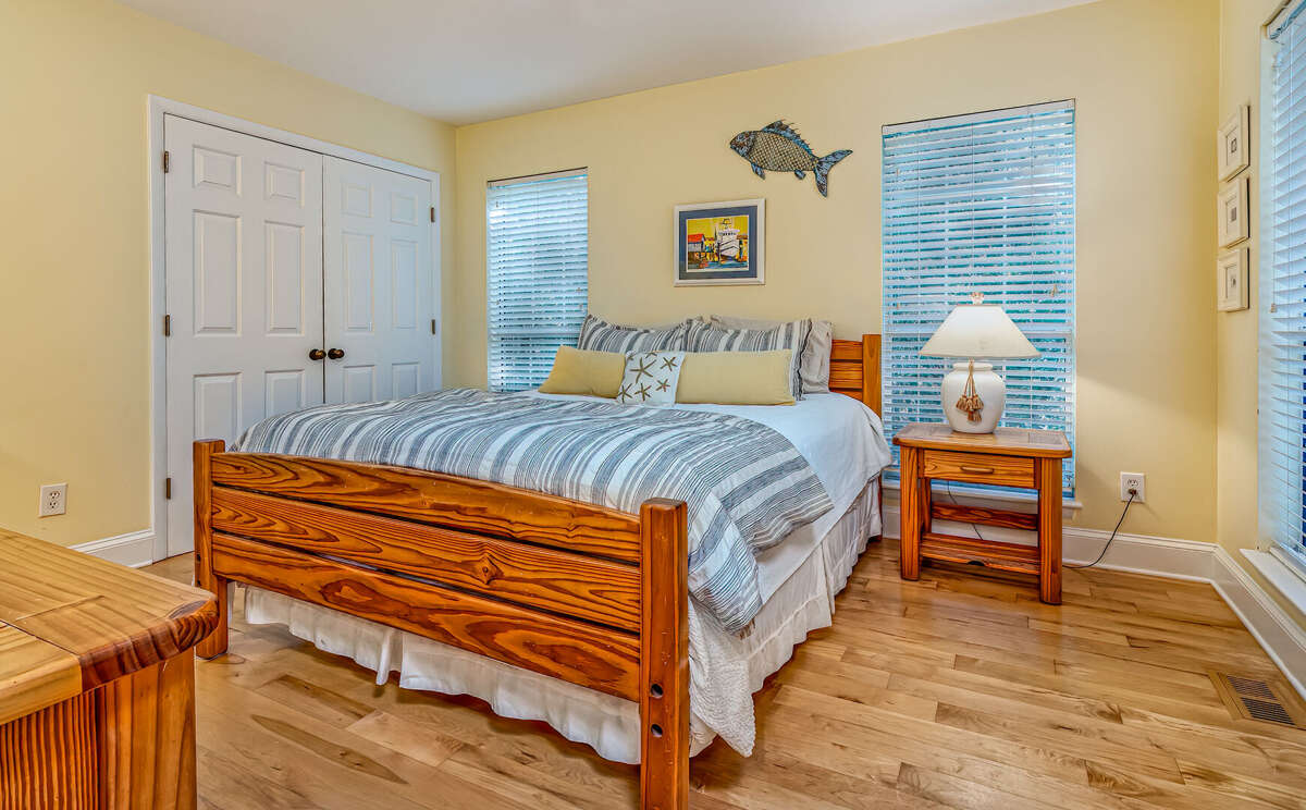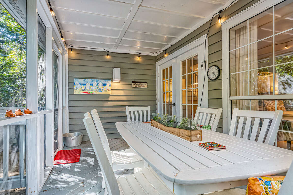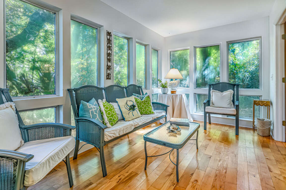 Featuring three bedrooms that comfortably accommodate up to eight guests, the vacation home at Cottage in the Oaks offers a spacious and inviting retreat for your stay. Our pet-friendly policies guarantee that your furry friends can join in on the fun, making your vacation truly complete. Additionally, guests have access to the community pool, perfect for a revitalizing swim or lounging under the sun. With three full bathrooms, everyone can enjoy privacy and convenience. The sunroom and screened-in porch provide relaxing spaces to unwind and enjoy the peaceful surroundings. Two golf carts are available, adding a touch of adventure to your island exploration. At Cottage in the Oaks, we prioritize your comfort and freedom, ensuring a memorable vacation experience.
