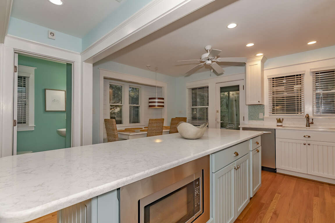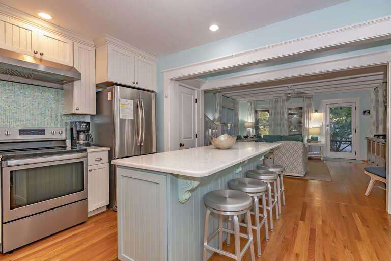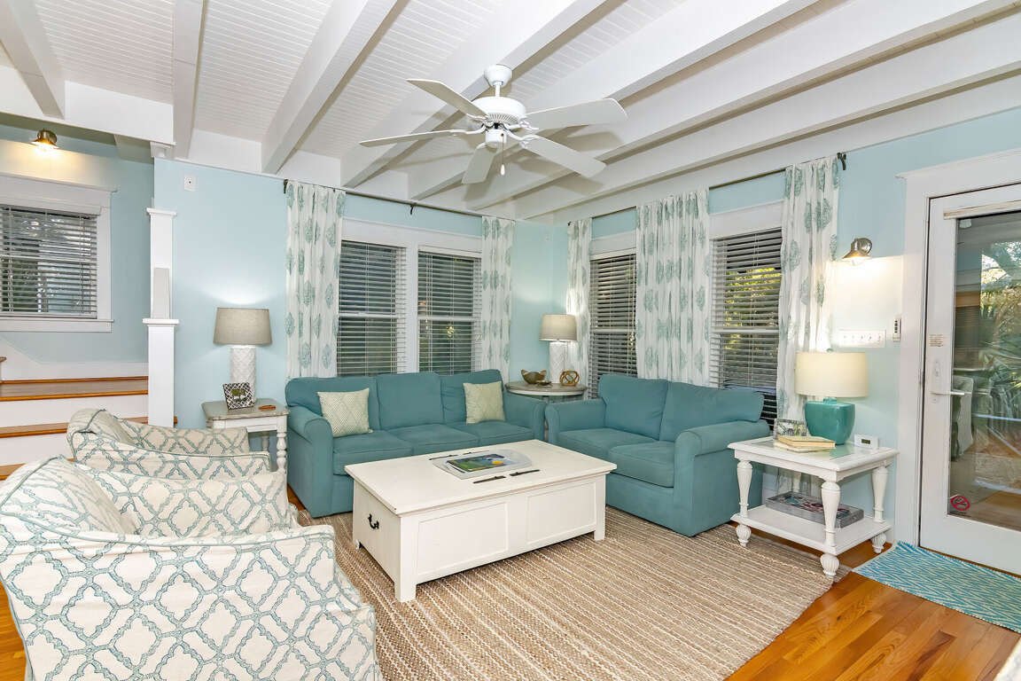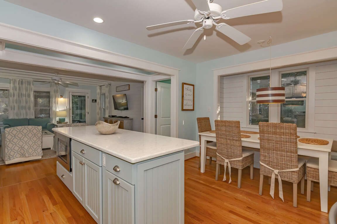 We very much enjoyed our two-week vacation to BHI! Dreamaway cottage is lovely and fit 6 of us very comfortably. It's perfectly located within a 3 minute cart ride (or 10 minute walk) to the Shoals Club and East Beach. The kitchen is well stocked with pots/pans, plates, utensils, cutlery, etc. There is plenty of seating around the kitchen table and in the living room area. The furniture is all in great condition and very pretty! We look forward to returning at some point!!