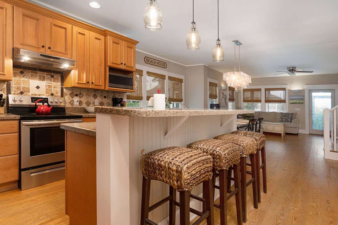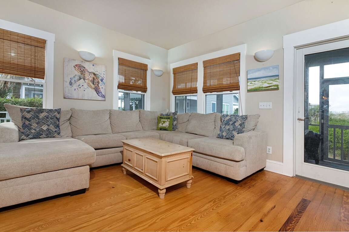 Location is unbeatable! Our ocean front, 4 bedroom home is perfect for a family vacation! The main house has 3 bedrooms and a guest cottage. Our home has an open, spacious design with a traditional floorplan. The first floor is home to the living room, dining area and kitchen. The 3 other bedrooms are upstairs, including a large master bedroom with a view of the ocean. Enjoy the expansive back deck while watching the spectacular sun set. Enjoy the 2 golf carts, beach gear, and wifi.