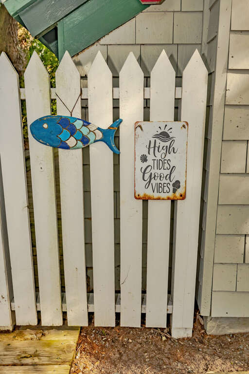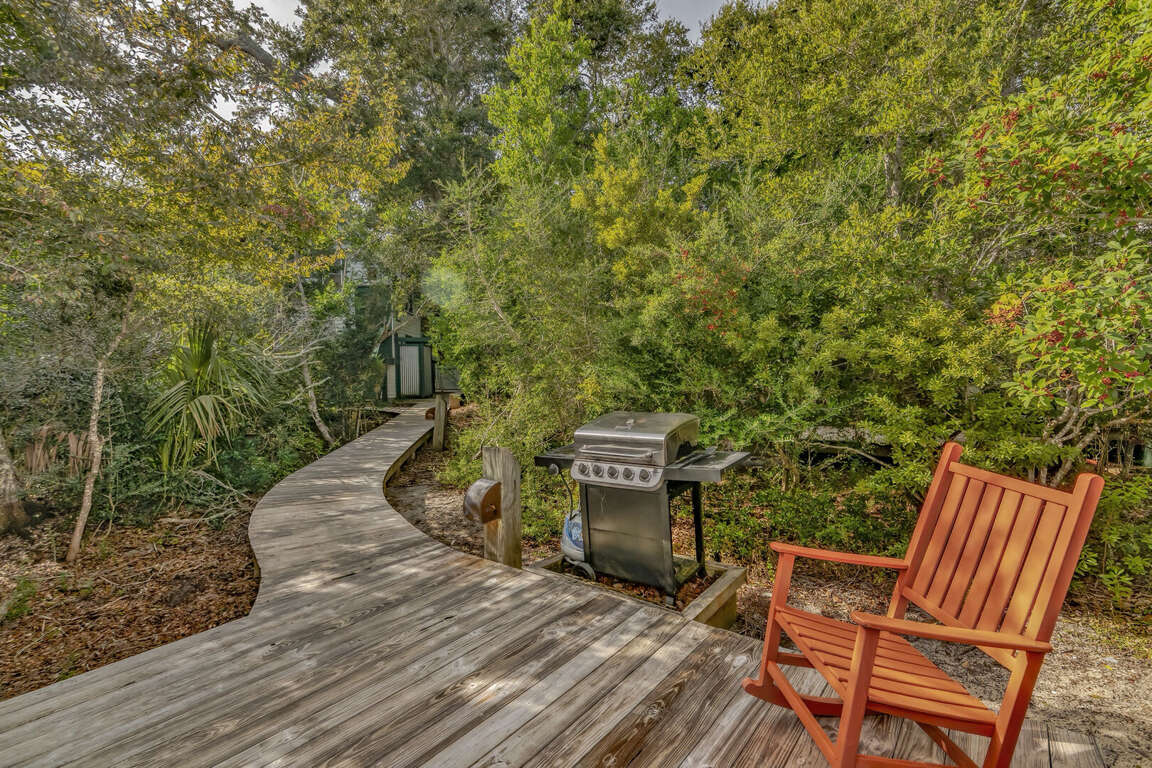 You can walk down the boardwalk to the Nantucket inspired cottage by opening the white picket fence. There is an outdoor shower on the way and a "treehouse" style guest house with a queen bed and ensuite. The screened-in porch at the main house is a great place to relax, play cards, have a thoughtful conversation, breathe the fresh, salty air, and listen the nature's symphony. Al fresco dining is an option. Gas-grill available.