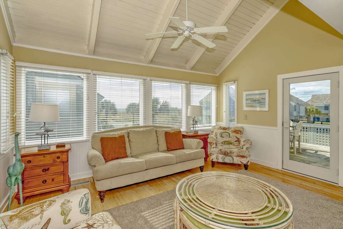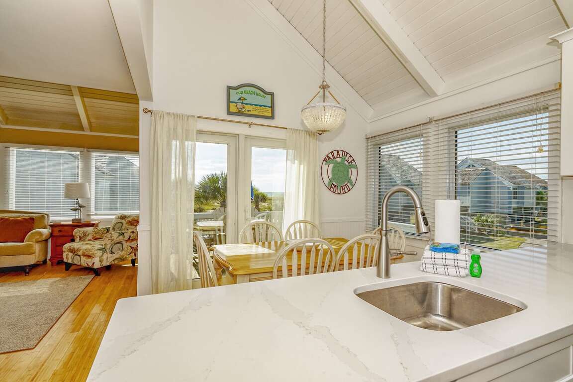 Located on Bald Head Island, our luxurious 3-bedroom getaway offers breathtaking ocean views and a newly renovated kitchen, perfect for a serene and upscale vacation experience. The sound of crashing waves and the salty ocean breeze greet you each morning as you sip your coffee in the spacious living area. The renovated kitchen boasts modern appliances and ample counter space, ideal for preparing gourmet meals or quick snacks before heading out to explore the island. Whether you're enjoying a meal at the dining table overlooking the ocean or lounging on the deck with a glass of wine at sunset, the beauty of the ocean views will mesmerize you throughout your stay.