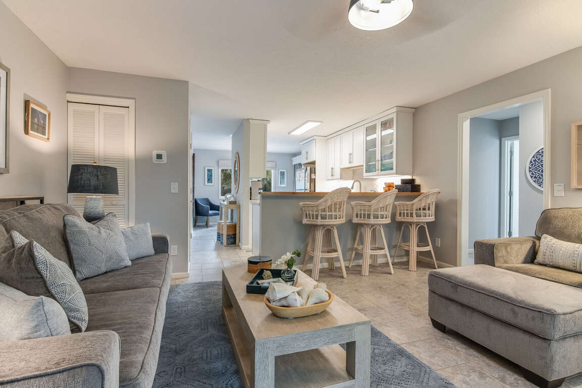 "Knot Online – Captain's Condo" consists of a two-bedroom / two-bathroom condo located in Royal James, with its own community pool. The newly remodeled kitchen has everything you need to cook. The master bedroom has a queen-sized bed and a spacious bathroom with a shower. The second bedroom has a queen-sized bed and a bath with a combination of a bathtub/shower. Knot Online has two balconies, one for each bedroom and the other for the main living area. The balconies are ideal for your morning or afternoon beverage. We also include a four-passenger golf cart for your Island cruise, wifi, and a temporary membership to the BHI Club & Shoals. Memberships are purchased through the clubs.