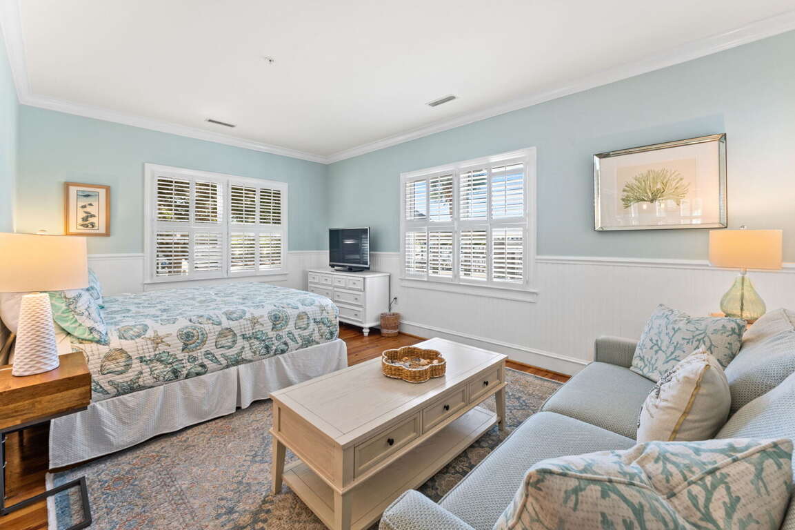 This corner mini-suite offers a quiet retreat for two. It includes a Queen Bed, a sofa and lounge combination seating, a full bath, a mini-refrigerator and microwave, a coffee maker and a toaster. Enjoy dining in your suite for two, with a view of one of the lovely garden areas or Harbour Views. Flat screen TV with DVD, cable and high-speed Internet are available for browsing and streaming. All complimentary! This little gem is a great place to get your sea legs back - just park your boat outside and you are home! Bald Head Island offers a vacationer a dream. There are 3 beaches to choose from for sunbathing, swimming and surfing, as well as Old Baldy, historical trails through the Maritime Forest, and much more. Try crabbing in the marsh right outside your private backdoor. The covered porch is a great place to relax and enjoy the breeze. Hardwoods, beadboards, ceiling fans, and coastal cottage furnishings like fine linens and a comfortable mattress are all included. In a flash, you'll be on Island Time and ready for adventure! Restaurants, bars and West Beach can be reached by a pleasant stroll. During your stay, a 4-person golf cart will be provided for your Island adventures.