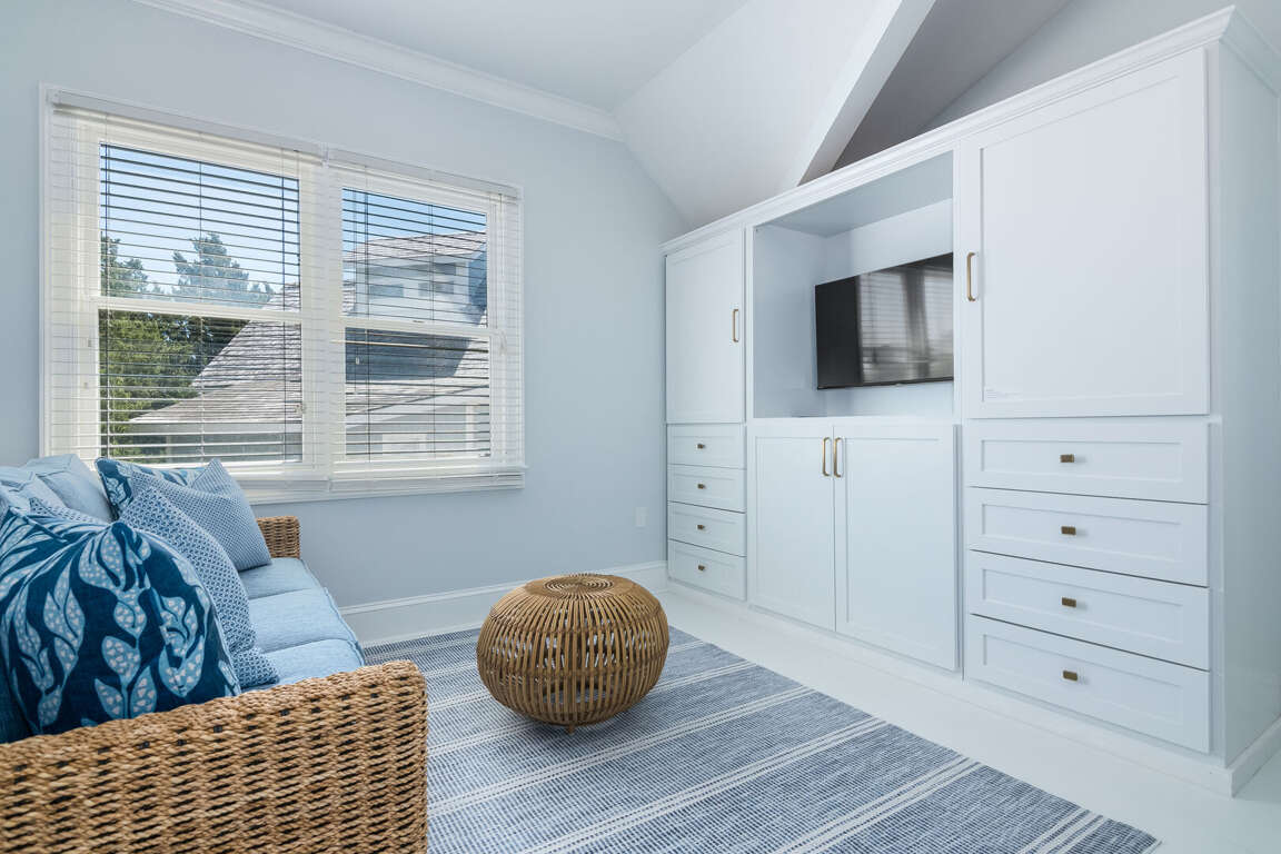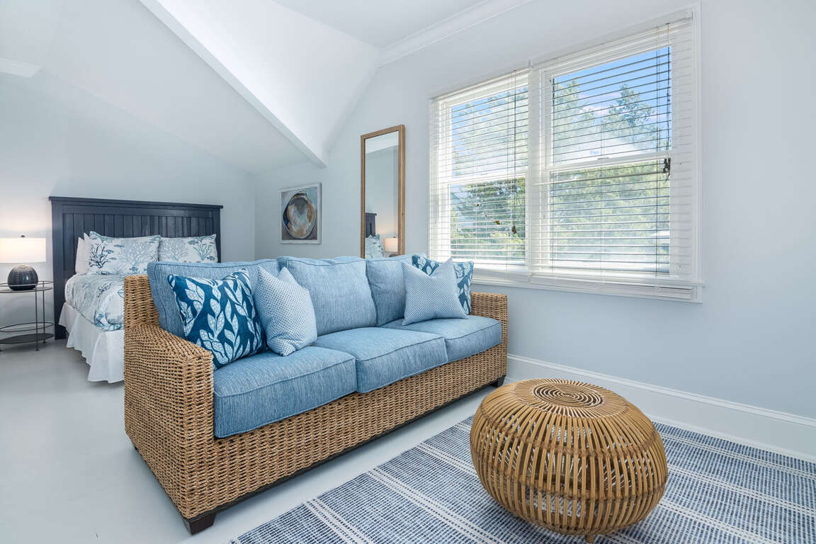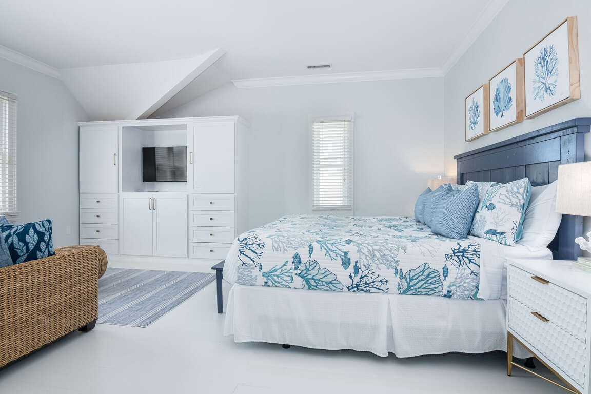 This lovely retreat on the second floor features hardwood floors, two Queen Beds in separate Alcoves with fine bedding and a full bathroom. A small seating area is located in front of a flat-screen TV with cable. Enjoy the mini-refrigerator and microwave in your suite, along with a coffee maker and starter packs of gourmet teas and coffee. There is plenty of space in the Armoire and Dresser for your travel clothes. The high-speed internet is included in your stay for no extra cost. Restaurants, bars, Oldy Baldy, and West Beach can be reached by a short walk. The Inn's charm and beautiful common areas - screened porches, open decks, and a Marsh-Side Grilling Area - will make you fall in love. Enjoy the activities in the harbor while feeling the tropical breeze. You'll be on Island Time in no time. You will receive a 4-person golf cart for your Island adventures, at no extra cost! Island rentals are typically $80 per day, which means you'll have more money to spend on island adventures.