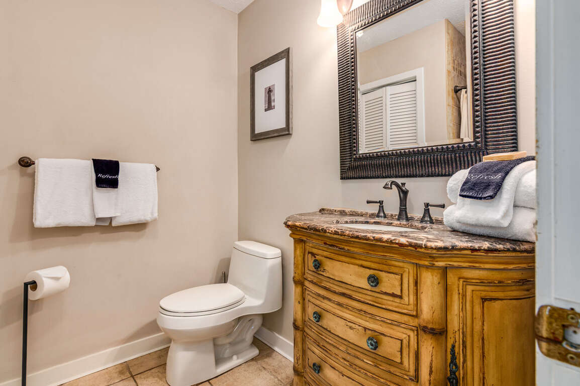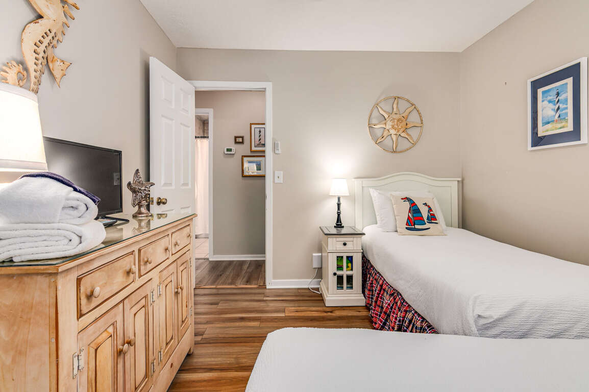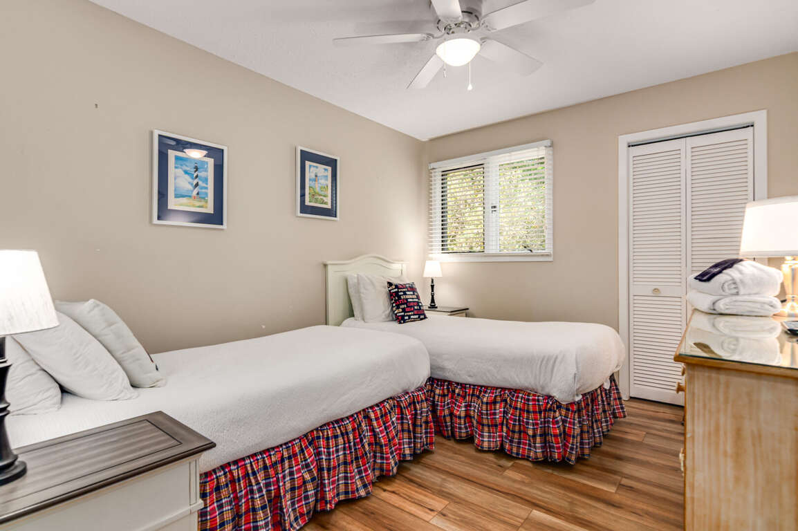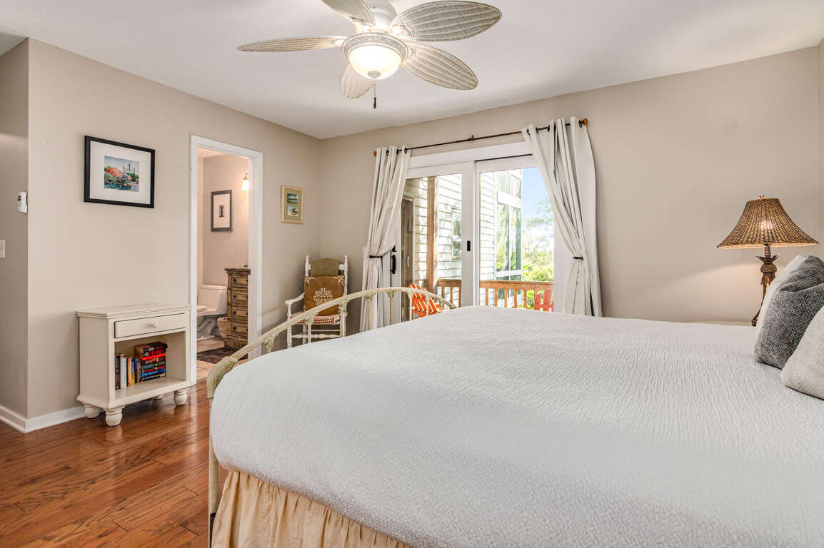 The bedrooms (king size, queen size, and two twins), feature luxurious bedding and pillowtop mattresses. The master bedroom is a true haven, with a private bathroom and sliding glass doors to the deck where you can enjoy the marsh views.