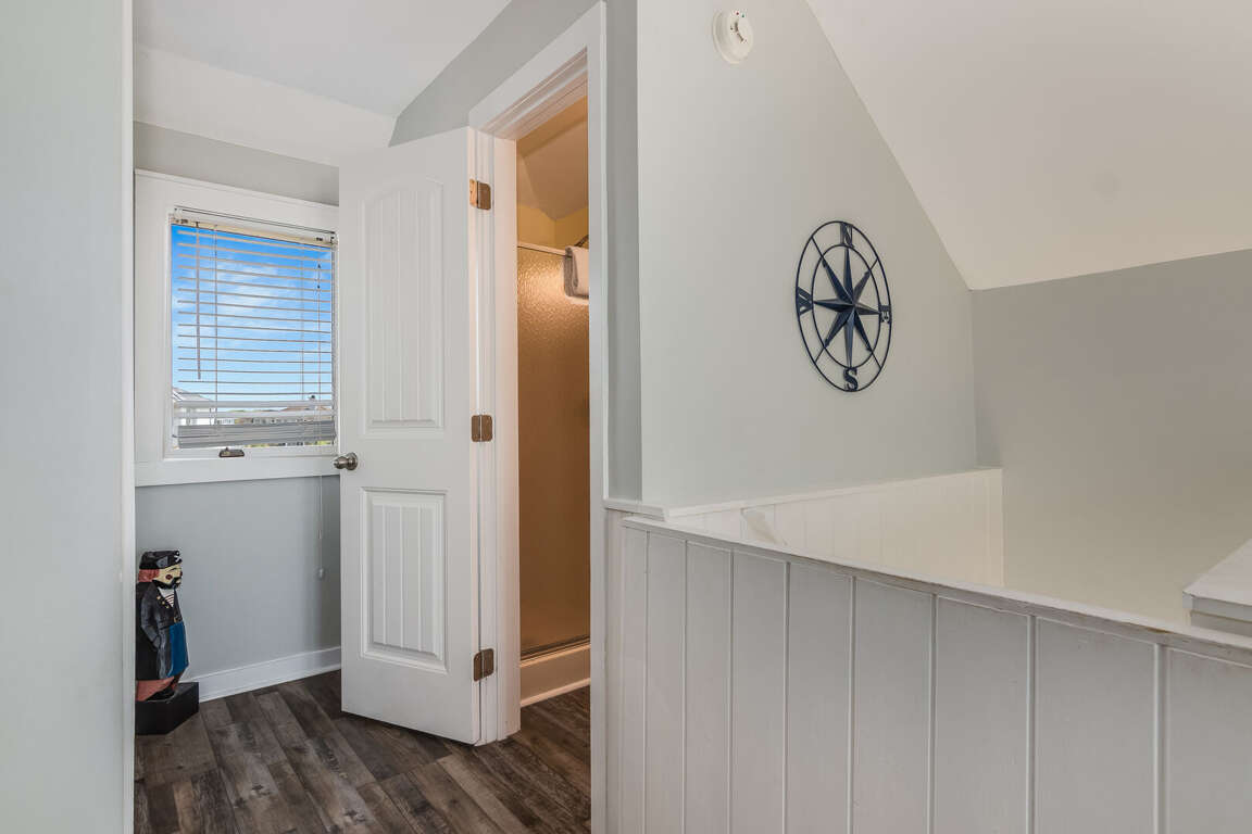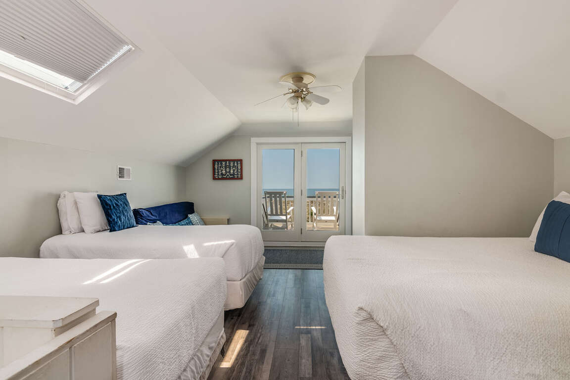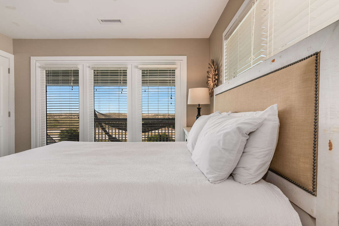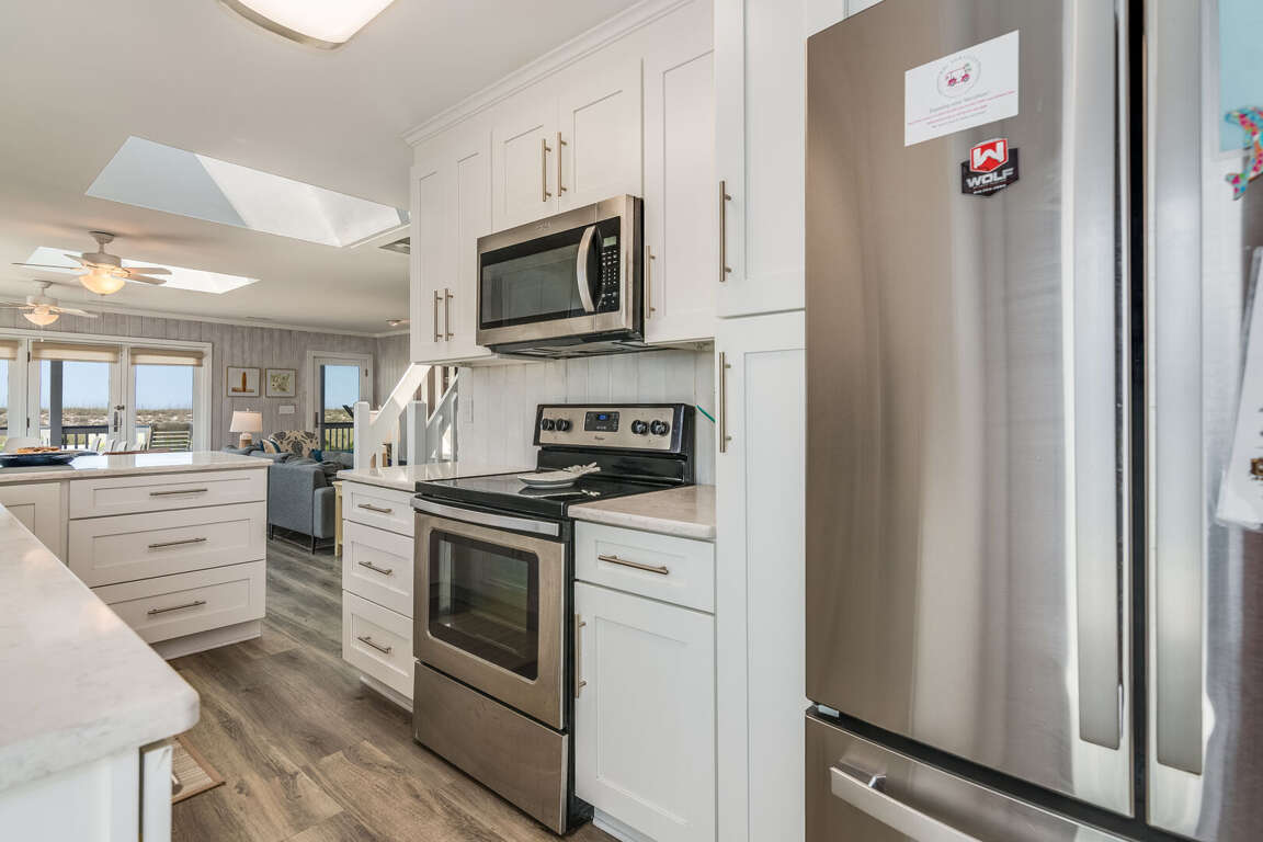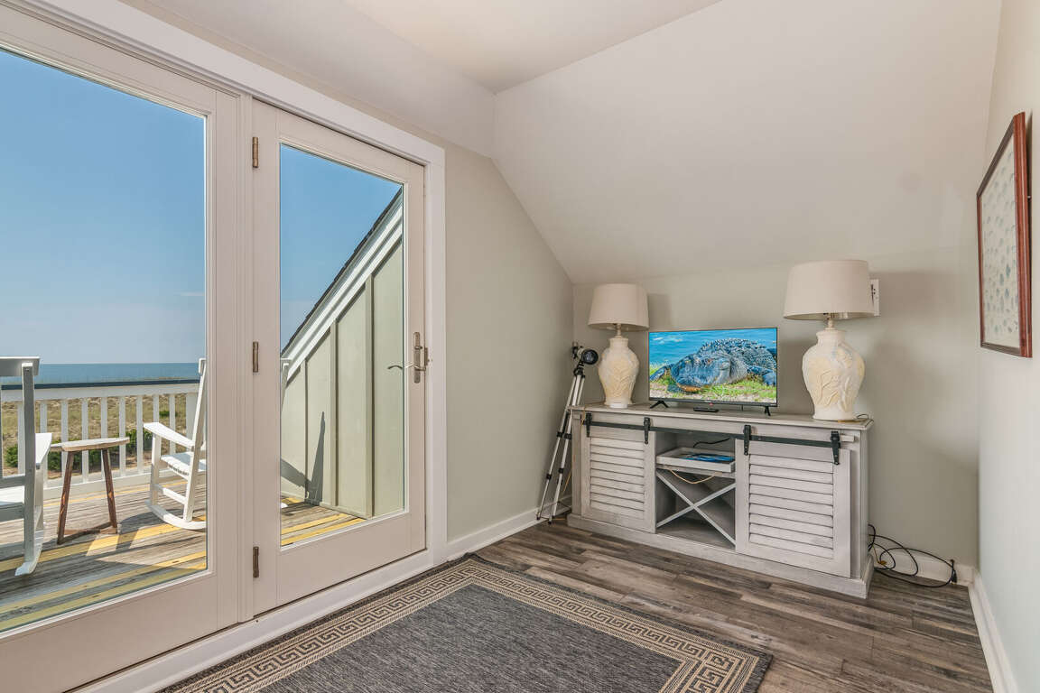 No Bones About It has one of best locations on the Island! The panoramic view, which is unobstructed, is simply breathtaking! Relax on our spacious porch and enjoy the sunset over the Atlantic Ocean. The first floor has a traditional layout with the living, dining, and kitchen areas. The kitchen is fully stocked, and the open space is perfect for family gatherings. The first floor has three bedrooms and three bathrooms. The first bedroom is equipped with a king-size bed, while the other two rooms have queen-size beds. In the last year, we have made many upgrades. We have a bedroom upstairs with a queen bed, two twin beds and a bathroom. This is the room that the kids love! Our home comes with wifi, beach equipment and two golf carts. Come and enjoy our little slice of paradise on Baldhead Island!