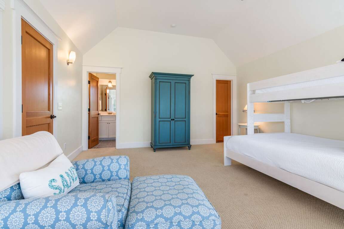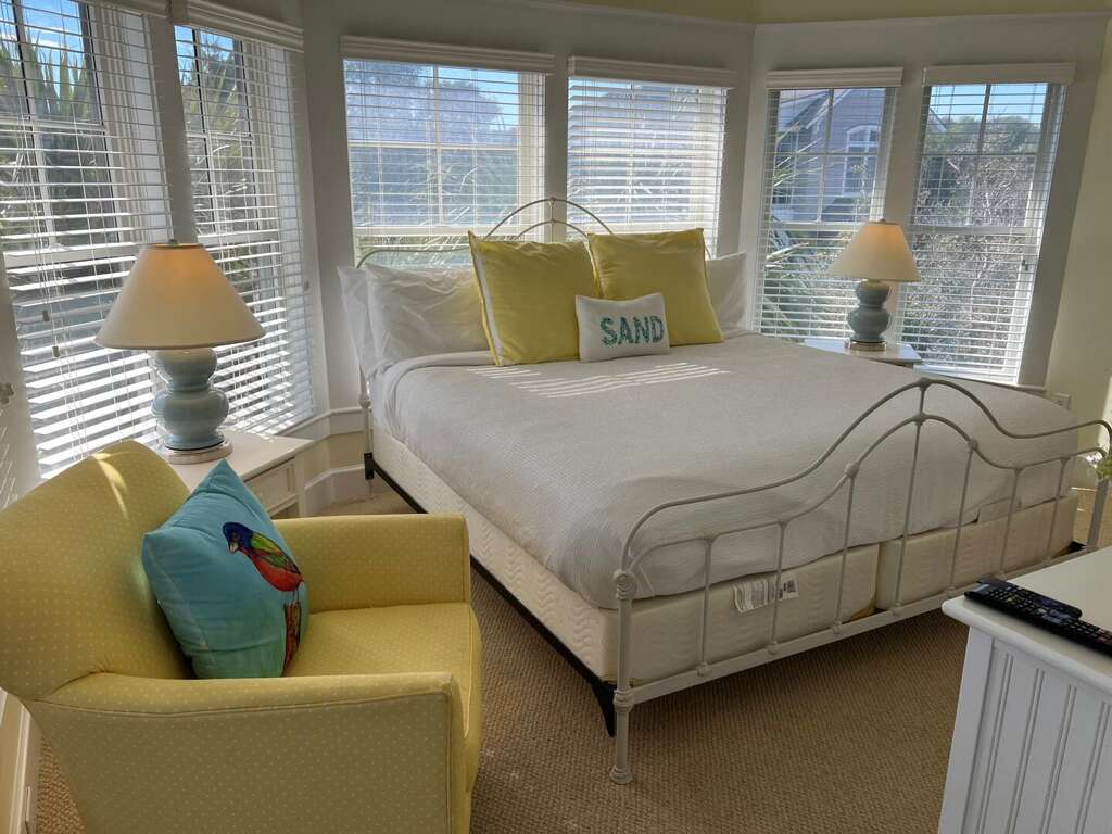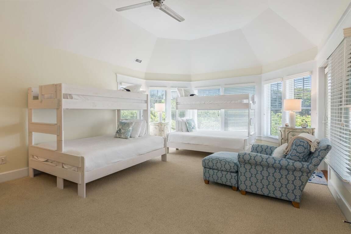 Located at 711 Federal Road on Bald Head Island, North Carolina, the vacation home at Pelican's Nest provides a spacious retreat with 4 bedrooms and 4.5 bathrooms, accommodating up to 12 guests comfortably. This charming rental is conveniently situated across from the island amenities, offering easy access to all the activities the area has to offer. The accommodation features two golf carts, ideal for exploring the island, and boasts great deck space for relaxing under the Carolina sun. Inside, guests will find a fully equipped gourmet kitchen, perfect for preparing meals to enjoy with family and friends. With a king, king, bunk bed, and queen sleeping arrangements, Pelican's Nest promises a restful and enjoyable stay for all visitors.