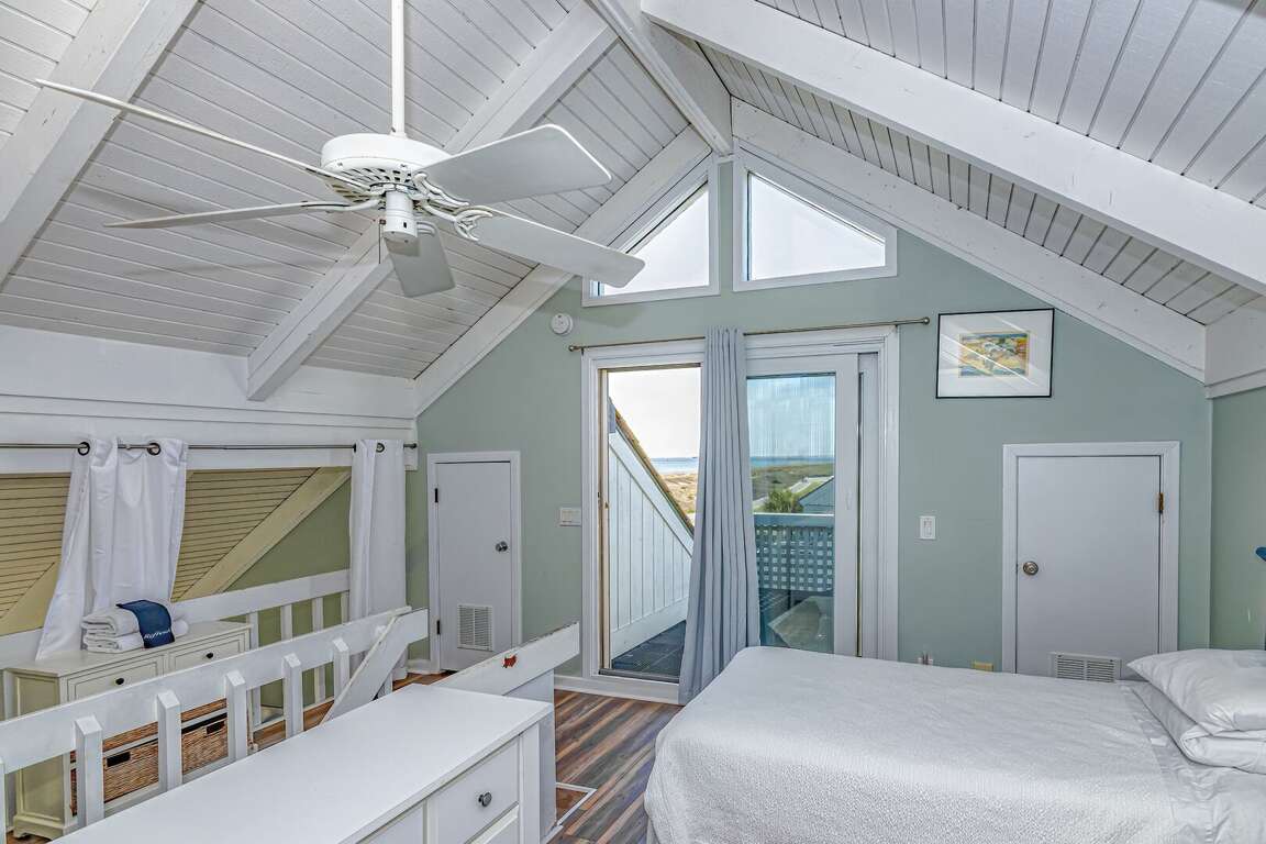 Come enjoy your Bald Head getaway with this cozy ocean villa! This home has three bedrooms and three full bathrooms. The master and guest room downstairs both have queen beds and the loft upstairs comes with two twin beds. The living room also has a sleeper sofa that can sleep 2. The newly remodeled kitchen has beautiful marble countertops and a large stainless steel fridge. The bathrooms have also recently been renovated with two stand alone showers and one shower tub combo. Saving the best for last, that beautiful view of South beach will have you coming back next year. Enjoy the sunsets while sitting on the deck and enjoying the ocean breeze. You will be able to enjoy Bald Heads luxuries by riding in our 4 pass or 6 pass golf cart. Sea you soon!
