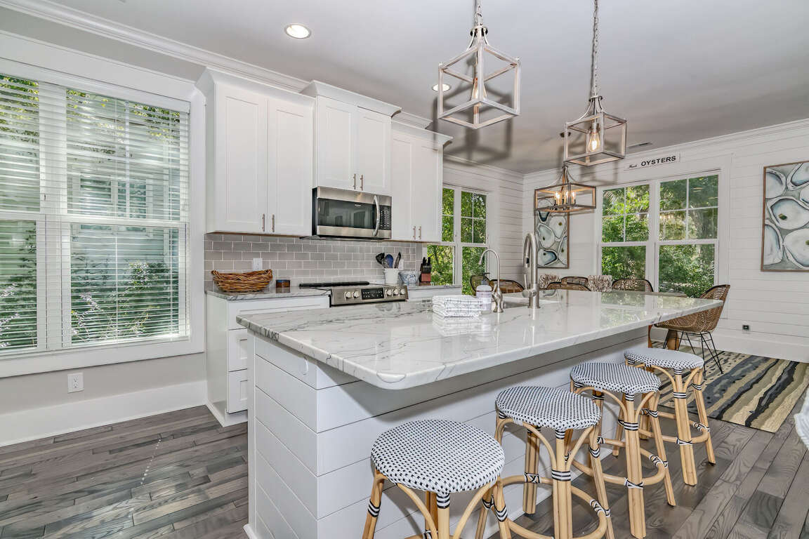For guests interested in the additional details of the Slo M'ocean property, important information regarding golf cart provisions, club memberships, pet policies, and provided amenities is available. The property offers 1-6 pass and 2-4 pass Golf Carts for convenient exploration. Club memberships for Shoals & BHI Full Access are accessible, allowing guests to enjoy exclusive amenities. Additionally, pets are welcome with a non-refundable fee, ensuring the whole family can enjoy the vacation. The house is equipped with a highchair, booster, and Pack and Play for young guests' comfort. Outdoor cameras provide added security. Take advantage of the club memberships and bring your furry friends along to make the most of your stay at Slo M'ocean.
