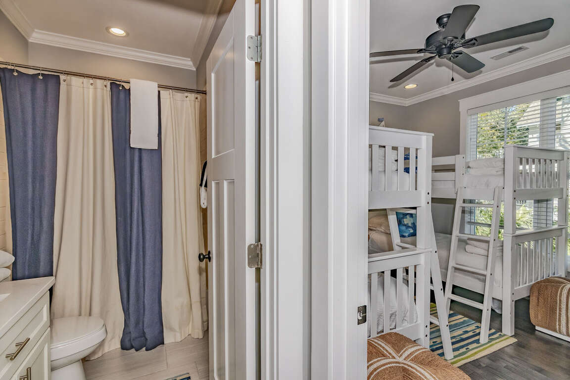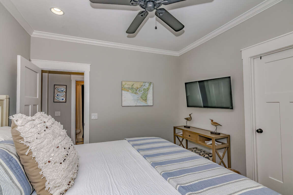 Come and enjoy the great amenities of Bald Head Island at "Salty Pig". This newly constructed home will make you feel at home. Our one-level floor plan makes it easy to get to the main living areas, and the great back deck overlooking the 6th golf hole at Bald Head. Three of the four bedrooms have king-sized beds, making this home ideal for multiple families. The kitchen has a spacious floor plan and is equipped with granite countertops and stainless steel appliances. This home has a full water filter system, a gas and charcoal grill, and a black-stoned barbecue. The home comes with a 1-6 pass and 2-4 pass Golf Cart. Enjoy a relaxing getaway at "Salty Pig".