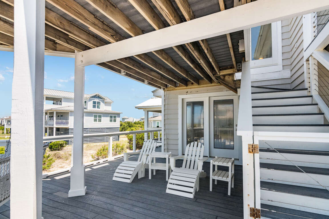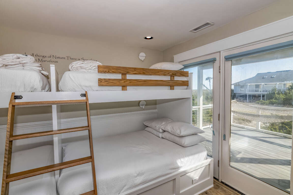 Our home 'Shoes Off,' on beautiful Bald Head Island, is only 20 minutes away from the mainland USA by passenger ferry boat. It's the perfect getaway for your family. Two stories of decks offer 180-degree views of South Beach, the Atlantic Ocean and golf course to the rear. The boardwalk beach is only 38 steps away. The Bald Head Island Club offers gourmet and casual dining options, championship golf and tennis, a kid-friendly pool with a water slide, championship Croquet Greensward, and an Adult Only Pool. Bald Head Island Club has a large playground for children, sand-volleyball court and day camp facilities. Shoes Off is a home for families that focuses on just that .....Family. Bald Head Island has been the most family-friendly place we have ever visited. Rentals can also purchase temporary memberships at BOTH the Baldhead Island Club and Shoals Club, which are sold separately by the clubs. The Shoals Club, located on the southeast corner of the island where the convergence between South and East Beaches forms the "Point" Cape Fear, is one of the most beautiful ocean vistas on the USA's Atlantic Coast. On the very tip, you can stand on a 2-foot-wide point of sand with waves coming both from the southwest and northeast. All Shoes Off guests will receive complimentary linens, beach towels, bath towels, paper towels, and trash bags. Our kitchen is well-equipped with seating for up to 10 people. We keep a guest cabinet open in the kitchen, which contains a variety of cooking spices, coffee filters, and oil. We are happy to offer the opposite. Bring your swimsuit, flip-flops and favorite refreshments, along with your iPad/Pod, a good book, and your bathing suit. Our home has a reversed floor plan, with living, dining, and screened porches on the third floor, as well as incredible ocean views. The home has two master suites and two other bedrooms located on the second level. Each bedroom has direct deck access with ocean views. One bedroom is geared towards children. It has TWO sets bunk beds, a sleeper sofa, toys, Spectrum Cable, and Apple TV streaming. We also provide two Pack & plays and one high-chair. A 48" stainless steel grill is located on the deck just outside the 3rd-floor kitchen/living room door. This grill can accommodate large groups or families. All bedrooms have large flat screen monitors with Spectrum cable TV. The third floor living area includes a 55" LED television, Spectrum cable, AppleTV, and a Bose Lifestyle System home theater audio system with Bluetooth audio connectivity. Wireless internet is available throughout the house, and the signal can even reach the beach. Fishing from the beach can be excellent or even outstanding. We recommend you unplug and grab a fishing rod instead!