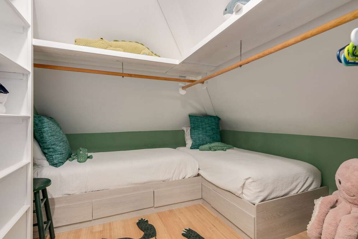 The master king bedroom is located upstairs, with a private balcony. The master bathroom has a double sink, soaking tub and oversized shower. In the master bathroom, there is a cute sleeping area with 2 twin beds. This is a favorite place for the kids!
