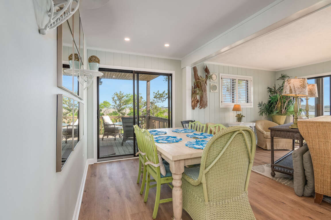 Sunrise in Your Slippers isn't the fanciest place we've stayed on Bald Head Island, but we were very happy here and hope to stay here again. If you need immaculate carpet, it's not the place for you; however the positives far outweigh the stains on the carpet. We enjoyed the comfortable king sized bed and, best of all, the views from almost every room. From the screened porch we saw a bald eagle, egrets, herons, an osprey, and ibises. I actually did get up several mornings to watch the sunrise. Thank you to the owners for sharing their lovely home with us and our doggie. We all had a fantastic time. If you are arriving on a Tuesday offseason as we did (the day after Labor Day), be aware that most of the island restaurants are closed on Tuesdays and the grocery store closes at 6. Good thing we brought trail mix! If you choose to join the Shoals Club during your offseason stay, you will have it almost to yourself. We love the views from there also. Thank you Bald Head Island Services for another great stay.