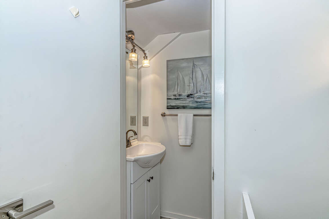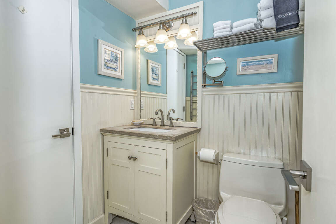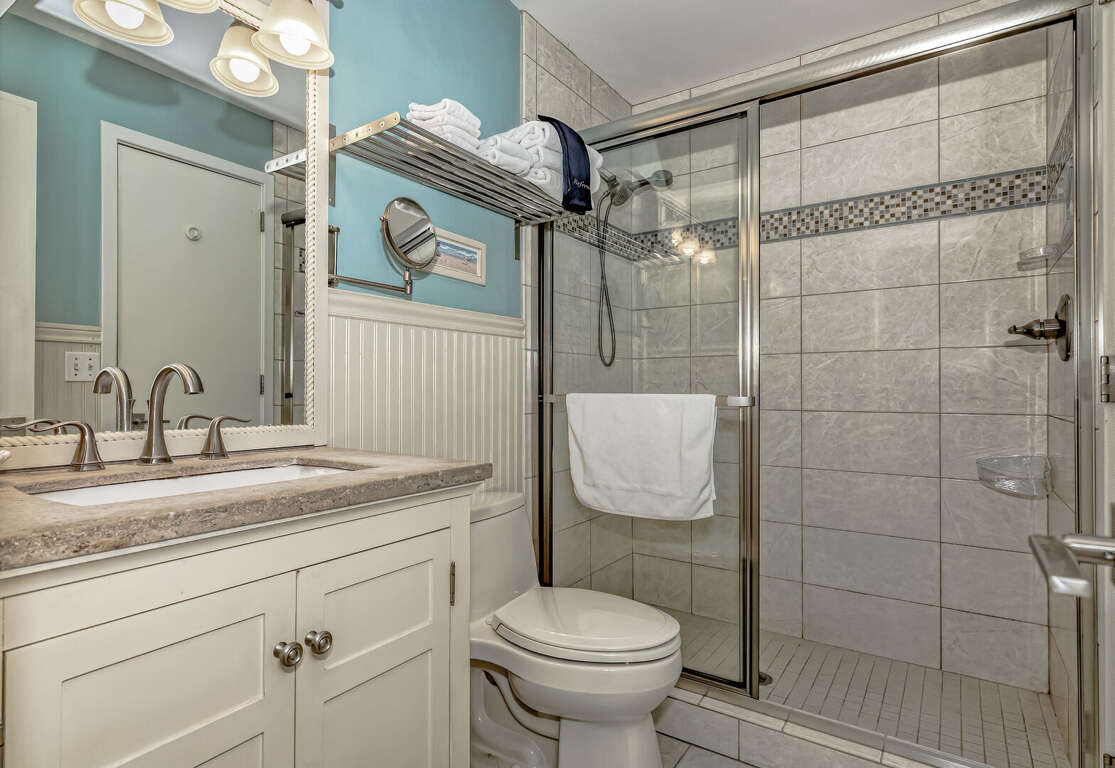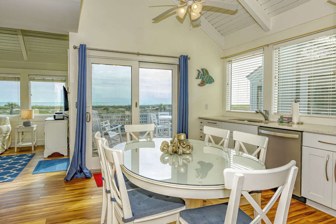 The living room, dining area and kitchen are all located on the first level. They overlook the beautiful Bald head beach. The kitchen has been completely remodeled and is fully stocked to meet all your cooking needs! The main floor also has the king master bedroom and the second bedroom. The 2nd bedroom features a king-sized bed and a shower.