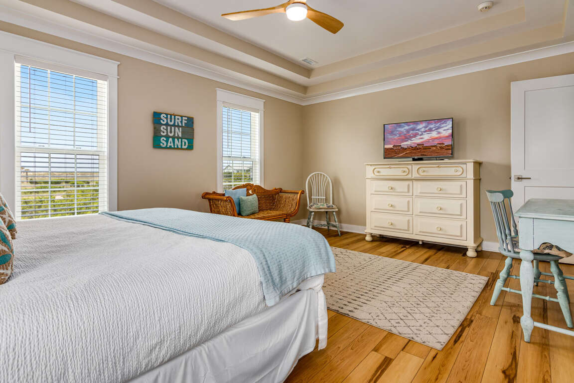 You'll want to book your next vacation after watching "To the Moon and Back". This beautiful home was renovated in 2019. It offers breathtaking views of Bald Head’s south beach. The living room, the great room, and the master bedroom all have these views. The wrap-around porch is the perfect place to enjoy your morning coffee or after-dinner beverages. The sunsets are a great way to create lasting memories with your family. This home is professionally decorated in a style that's perfect for a beach house. The gourmet kitchen has a fully-stocked kitchen, granite counters and stainless steel appliances. The home features four bedrooms, three bathrooms and enough space to sleep 12 people. This home includes access to the BHI Club, which can be purchased separately. It also comes with two golf carts that have been recently purchased in 2019. We can't "sea you" soon enough!