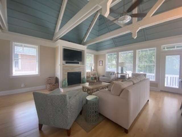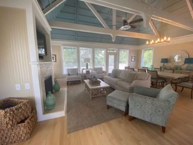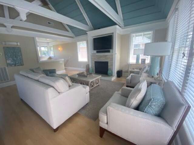 Flyway Cottage, a charming 2 bedroom cottage is located at The Hammocks of Bald Head Island. It's a reversed floor plan with the main living space, dining area and kitchen located upstairs. You will find a king-sized master suite downstairs, as well as two guest rooms with 2 queen beds. Each room has its own private bathroom. The Flyway Cottage comes with a 6 passenger Golf Cart, WiFi, Fitness Facility, Community Pool & Club House, as well as the ability to join BHI and Shoals club for a separate charge. Simple coastal living at its finest!