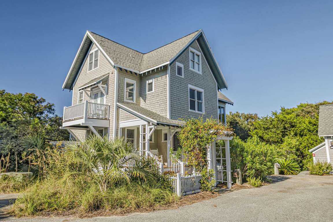 Perched atop the dunes at Bramble Reach, this luxury 3-bedroom vacation rental in Bald Head Island, North Carolina offers breathtaking views of the Atlantic Ocean. The oceanfront location provides stunning views, creating a serene backdrop for a peaceful retreat. With a spacious layout, this property is perfect for families looking to unwind and enjoy quality time together. The reverse floorplan design includes a downstairs king master bedroom with a private screen-enclosed porch, while the main living area upstairs features a dining area, kitchen, bar area, and half-bath. Whether savoring sunsets from the porch or exploring the nearby beach, this vacation rental promises a memorable escape for those seeking both comfort and natural beauty.