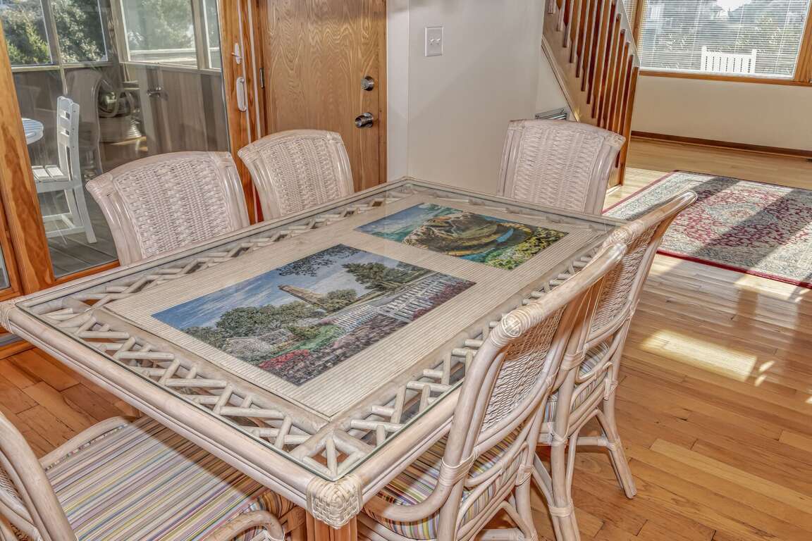 Featuring a fully furnished interior and thoughtfully equipped kitchen and living spaces, the vacation home in Bald Head Island, NC offers a comfortable and convenient retreat for families and groups seeking a relaxing getaway. The layout of the home includes four spacious bedrooms, accommodating up to 10 guests, making it ideal for large families or groups. The decor style exudes coastal charm with nautical accents, creating a serene and inviting atmosphere. Each room is tastefully decorated to reflect the beachy surroundings, ensuring a tranquil stay. The open-concept living areas flow seamlessly, providing ample space for socializing and relaxation. Whether enjoying a meal in the dining area or unwinding in the cozy living room, this vacation home offers a perfect blend of comfort and style.