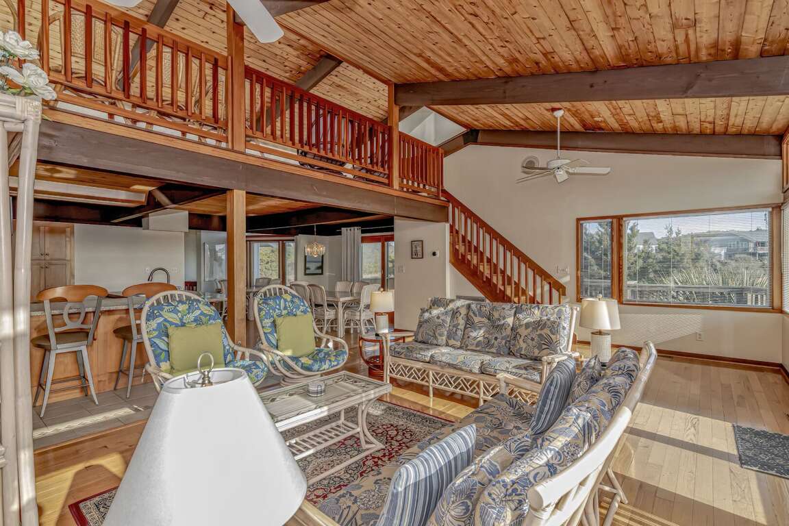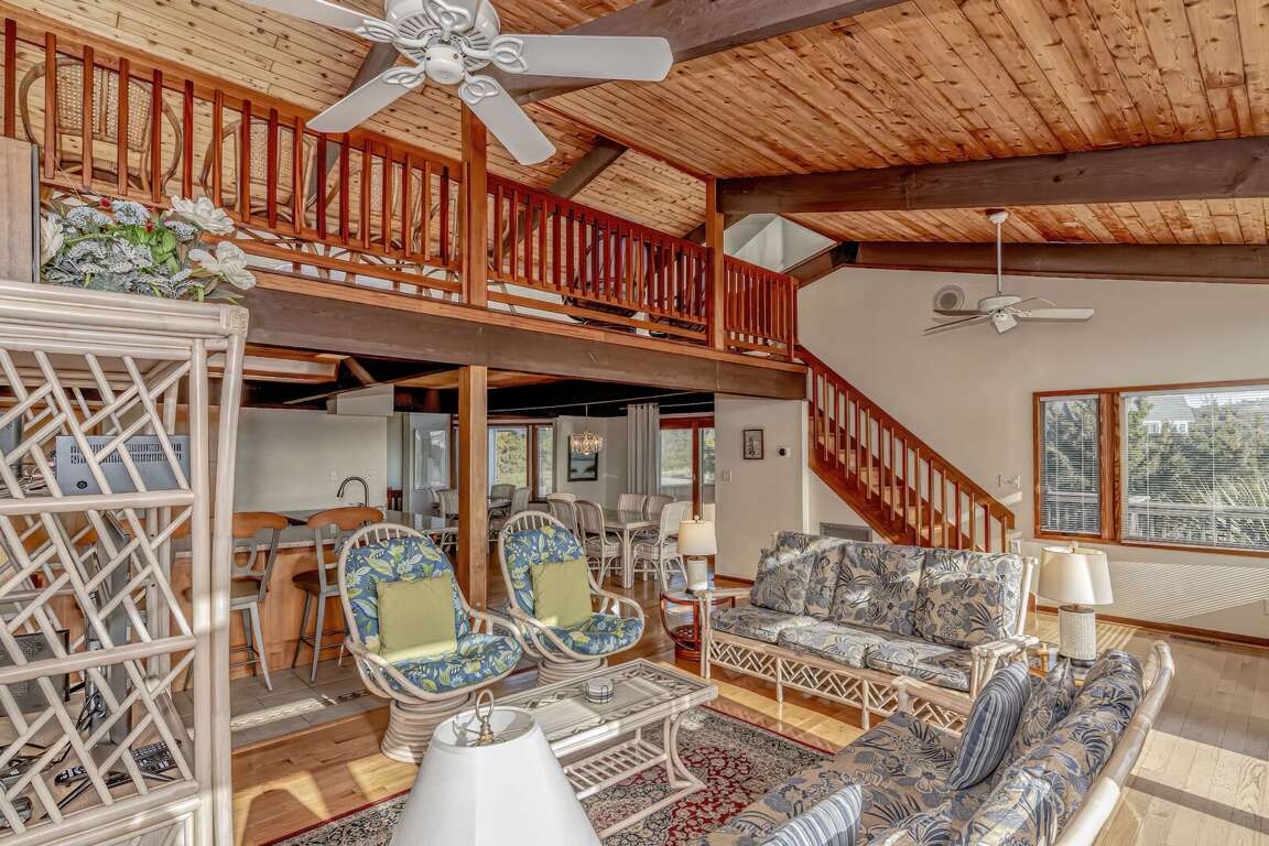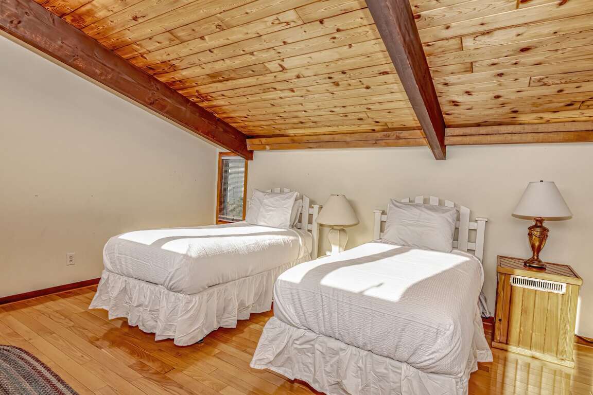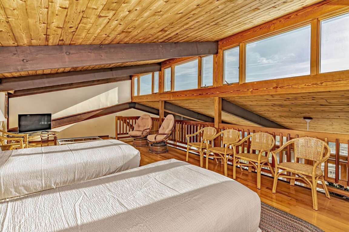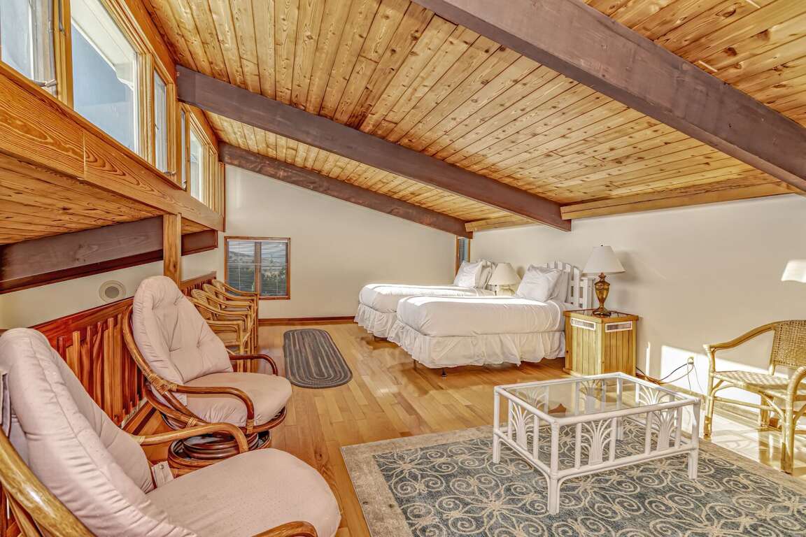 The upstairs loft offers additional sleeping space. Think of it as a fifth bedroom. The room has twin beds and doubles as a kids' getaway area.