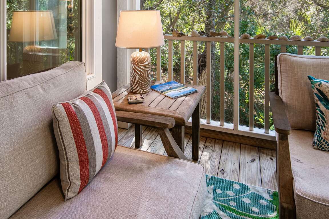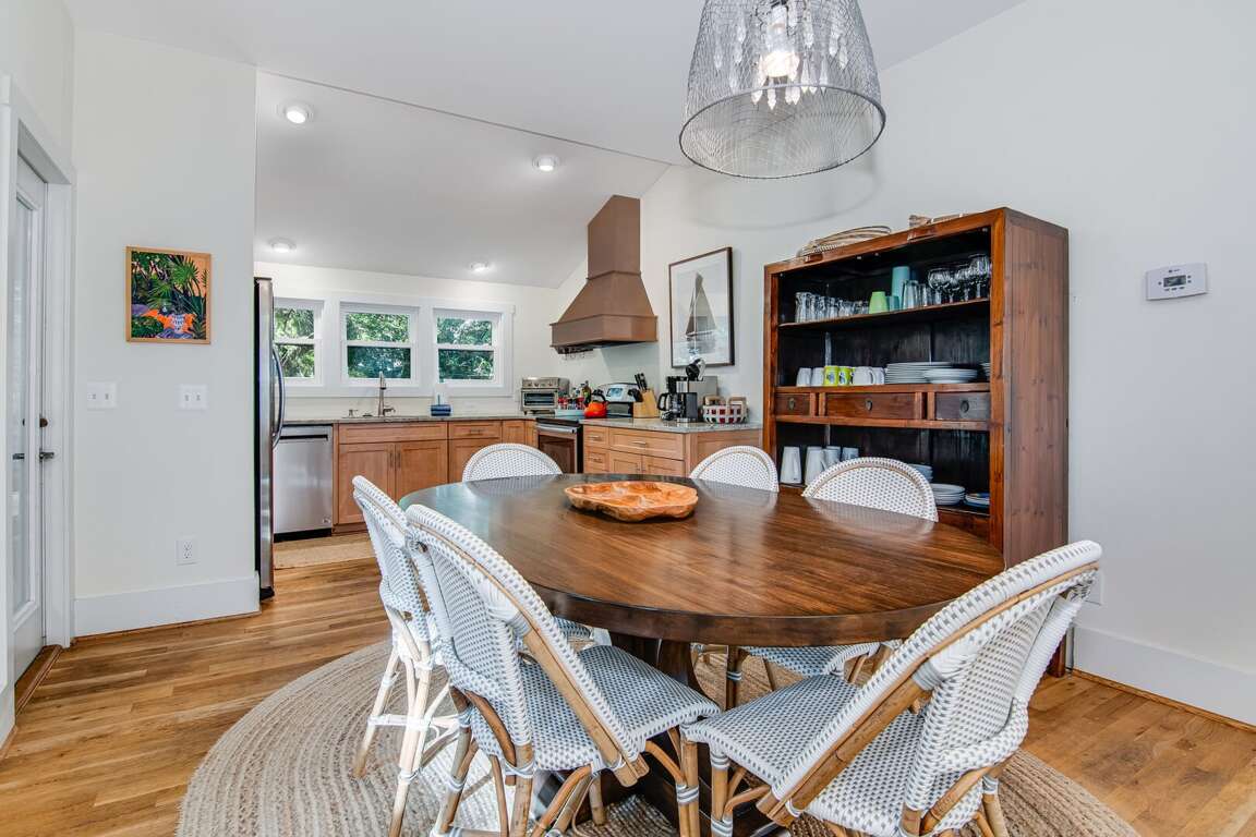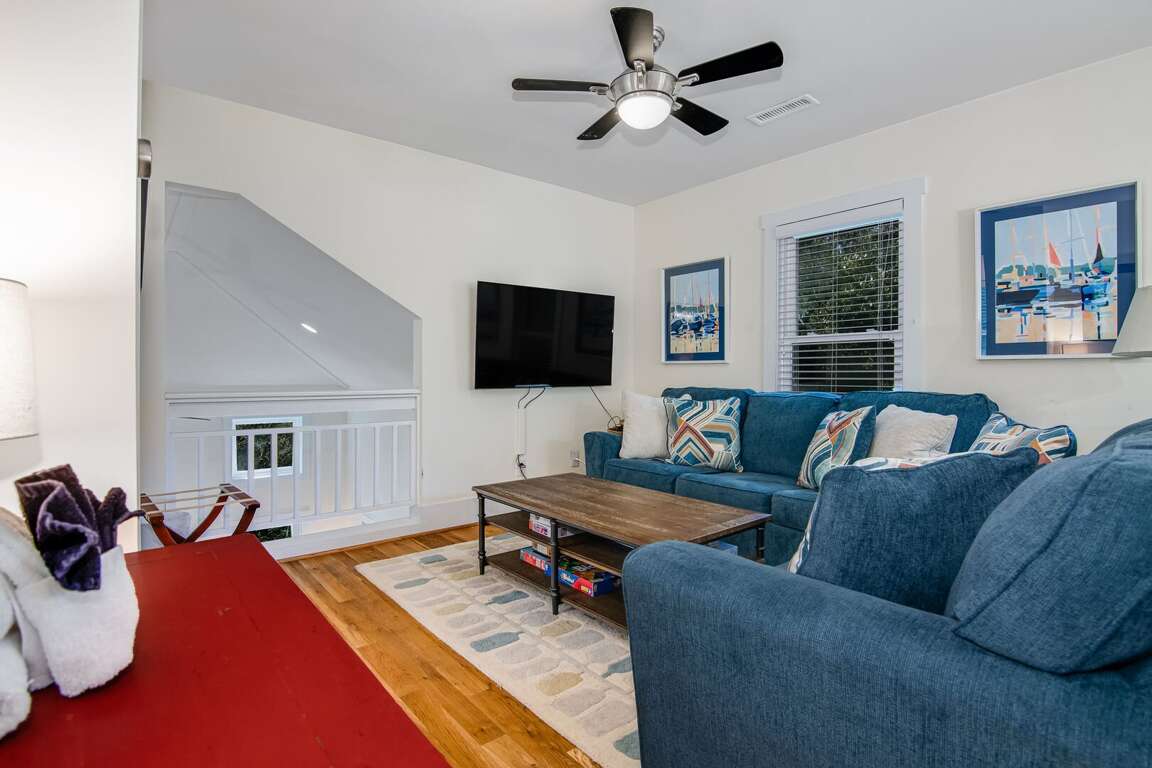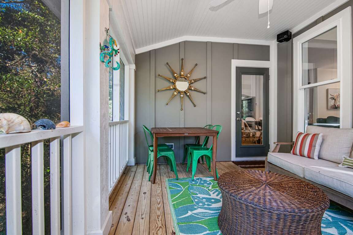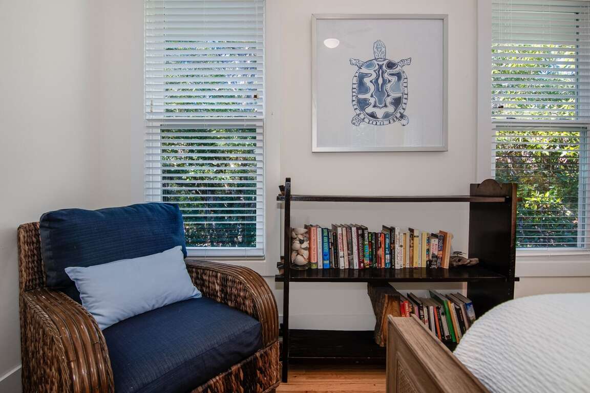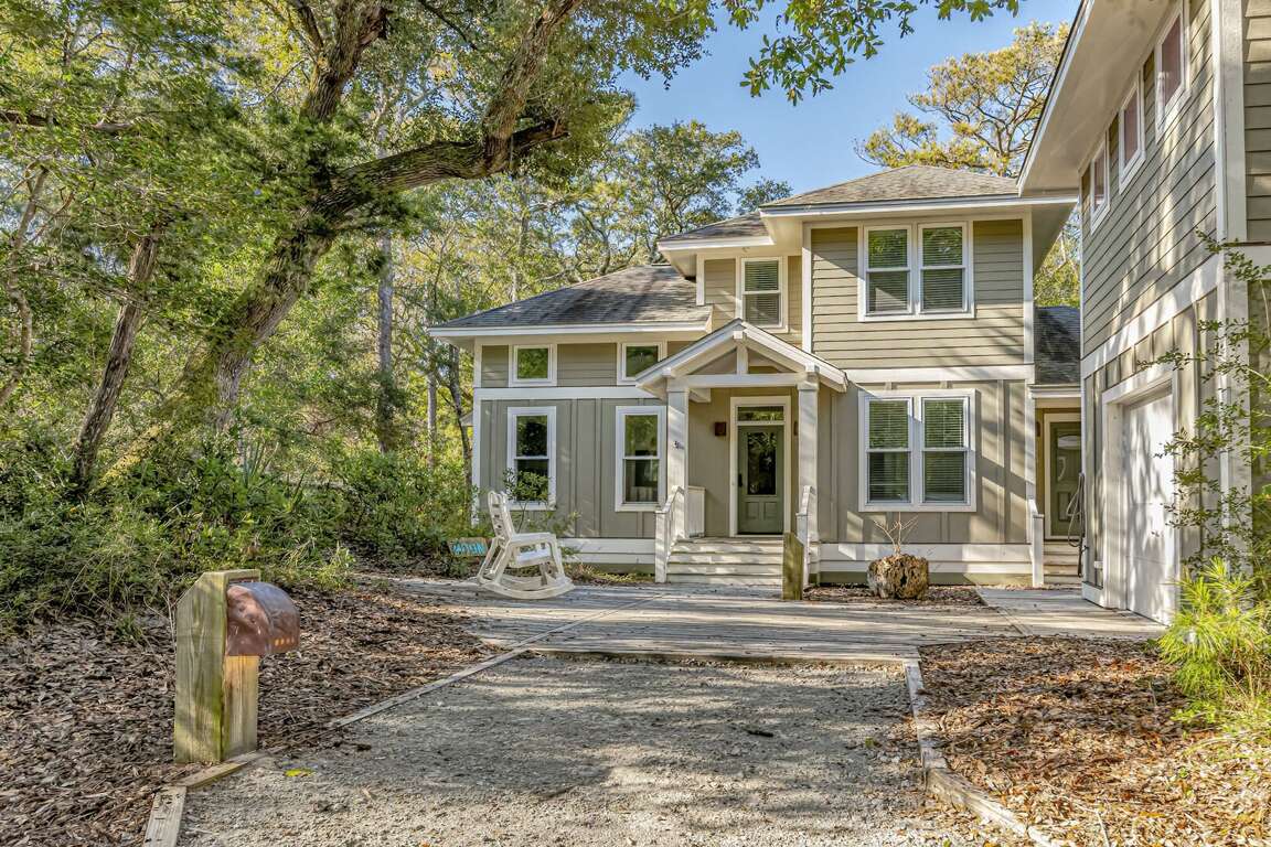 Nestled in the Maritime Forest and seemingly far from everything, this home is surprisingly close: only two minutes away are the beach, the market, Old Baldy, and the BHI Club. You may never want leave the back porch. After a long day of riding the waves or a relaxing cocktail, you can sink into the cushions and read a book while pondering on the intricate sculptural details of the Live Oak trees. The cathedral ceiling in the living room floods the space with light, making it feel even bigger. The 46-inch Smart TV is perched over a rare cedar fireplace. Live Edge Oak shelves bring warmth to the space. The open floor plan that flows into the dining room allows everyone to spread out and be together. In the kitchen, old heart pine shelves are nestled up against stainless steel. The upstairs bedroom with full bath is the perfect retreat. The loft, which has a trundle and another 32-inch TV, is a great room for games during the day, and two twin beds at nights. Fat Moon. Come feels its pull on You In the crofter over the garage is another queen bed with a full bath. You can add up all the bedrooms and a bonus loft room that can accommodate two more people. BHI Club membership is available.