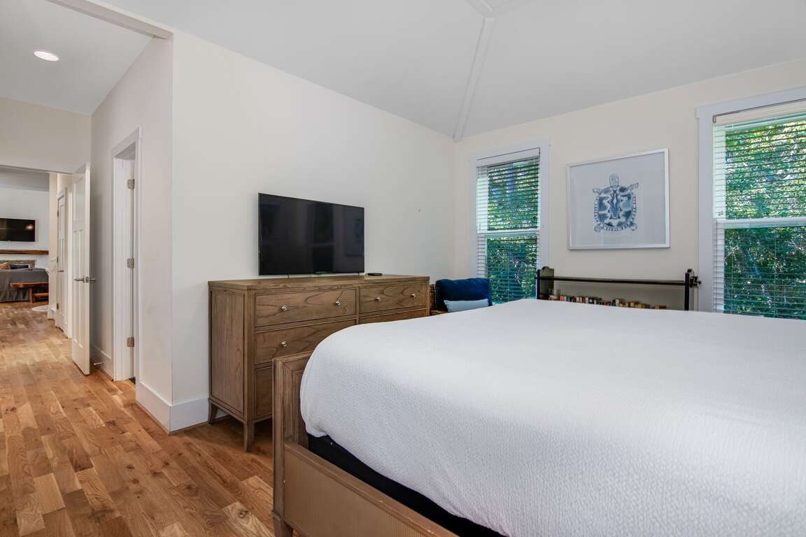 Fat Moon boasts a range of amenities and features that guarantee the comfort and enjoyment of guests during their stay on Bald Head Island. Guests can indulge in poolside relaxation and entertainment options while enjoying the modern amenities and comfortable living spaces provided. The house features a cathedral ceiling in the living room with a 46-inch Smart TV, an open floor plan including a dining room, a loft with a trundle bed and a 32-inch TV, and a crofter over the garage with a queen bed and full bath. Additionally, guests have the option of a BHI Club membership for further recreational opportunities. With these amenities, Fat Moon ensures a luxurious and convenient vacation experience for all visitors.