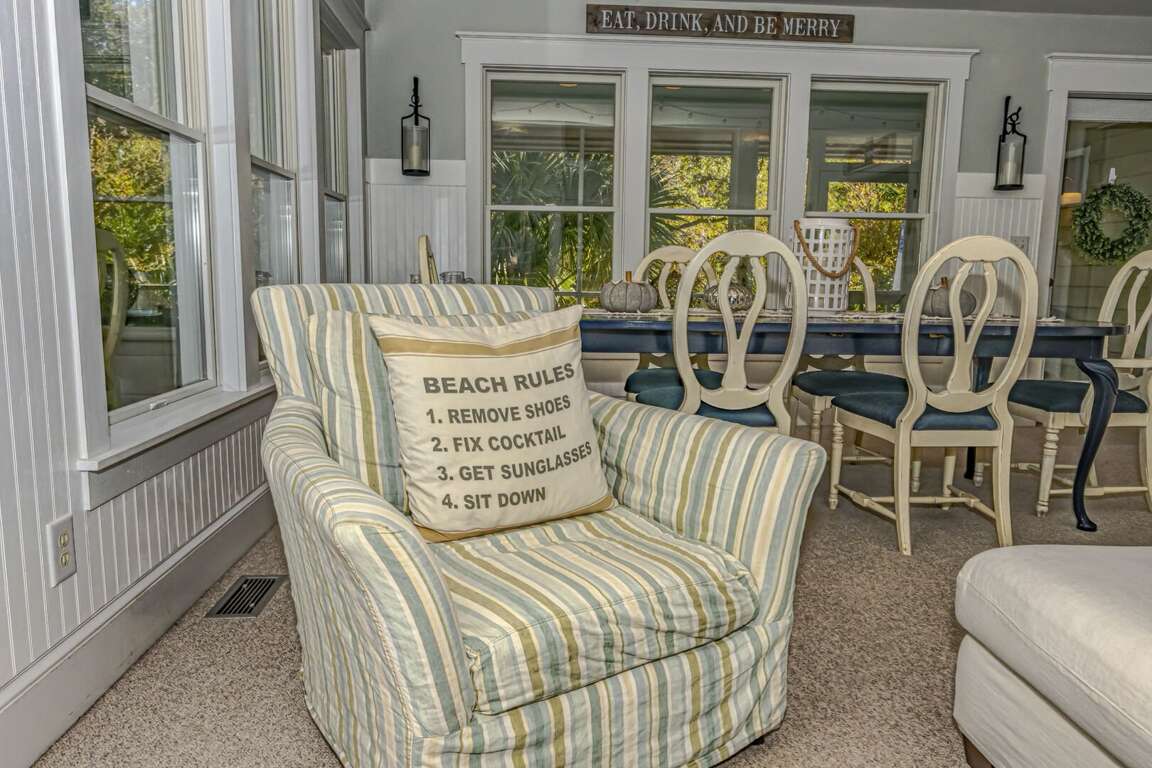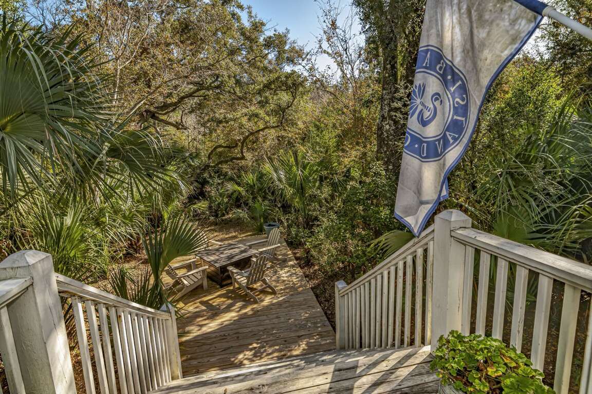 This is one of the few rental houses in the exclusive Palmetto Cove area, with access to a neighborhood dock for fishing or crab-catching. The new owners have filled this house with sleeping options for 12 people. The owners have flipped the master bedroom so that the entire second level can be used for the kids' dormitory, complete with bunk beds, trundles and games. Two master bedrooms with private baths are downstairs. Perfect for two families. The house is spacious despite the many sleeping options. The house has plenty of space for everyone, and the two-story living room ceiling makes it seem even bigger. Located in Palmetto Cove on a half acre lot, it is just a short drive to the nearby Maritime Market. Bring some crab traps and fishing poles, and head down to the dock located at the end of your street. Two carts. Two carts: 6 passenger and 4 passenger. Shoals Club memberships are available.