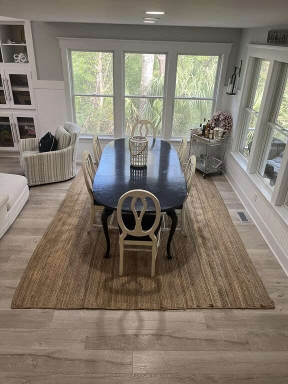 Offering an array of conveniences, this vacation home includes amenities that cater to both comfort and entertainment needs. Enjoy leisurely bike rides with the provided 8 adult bikes and 2 junior bikes, perfect for exploring the scenic beauty of Bald Head Island. For relaxing beach days, make use of the gas grill available for cooking up delicious meals to enjoy by the shore. After a day of outdoor adventures, unwind in one of the two master bedrooms with private baths, or gather in the spacious two-story living room with its soaring ceiling. Whether you prefer to unwind indoors or engage in outdoor activities, this vacation home provides the perfect balance of comfort and excitement for your stay on Bald Head Island.
