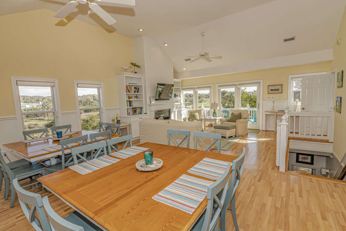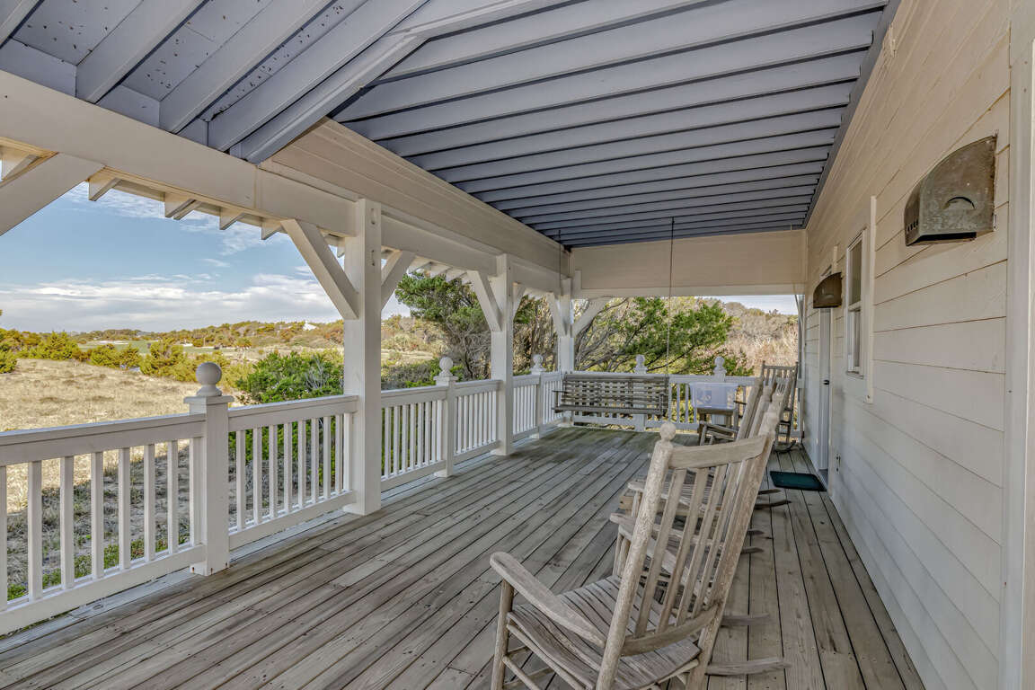 Located at 331 Stede Bonnet Wynd, this luxurious vacation rental on Bald Head Island offers 5 bedrooms, accommodating up to 10 guests, along with 5 full bathrooms and a charming crofter above the garage providing additional comfort and convenience. The spacious layout of the cottage includes a well-appointed kitchen, a dining table for 12, and ample porch seating, perfect for gatherings and relaxation. Situated in a stunning location, guests can enjoy panoramic views of the ocean and a nearby golf club par-3 hole. The cottage's design seamlessly blends indoor and outdoor living spaces, with decks and porches adorned with swings, rockers, love seats, and Adirondack chairs, creating an inviting atmosphere for guests to unwind and soak in the beauty of Bald Head Island.