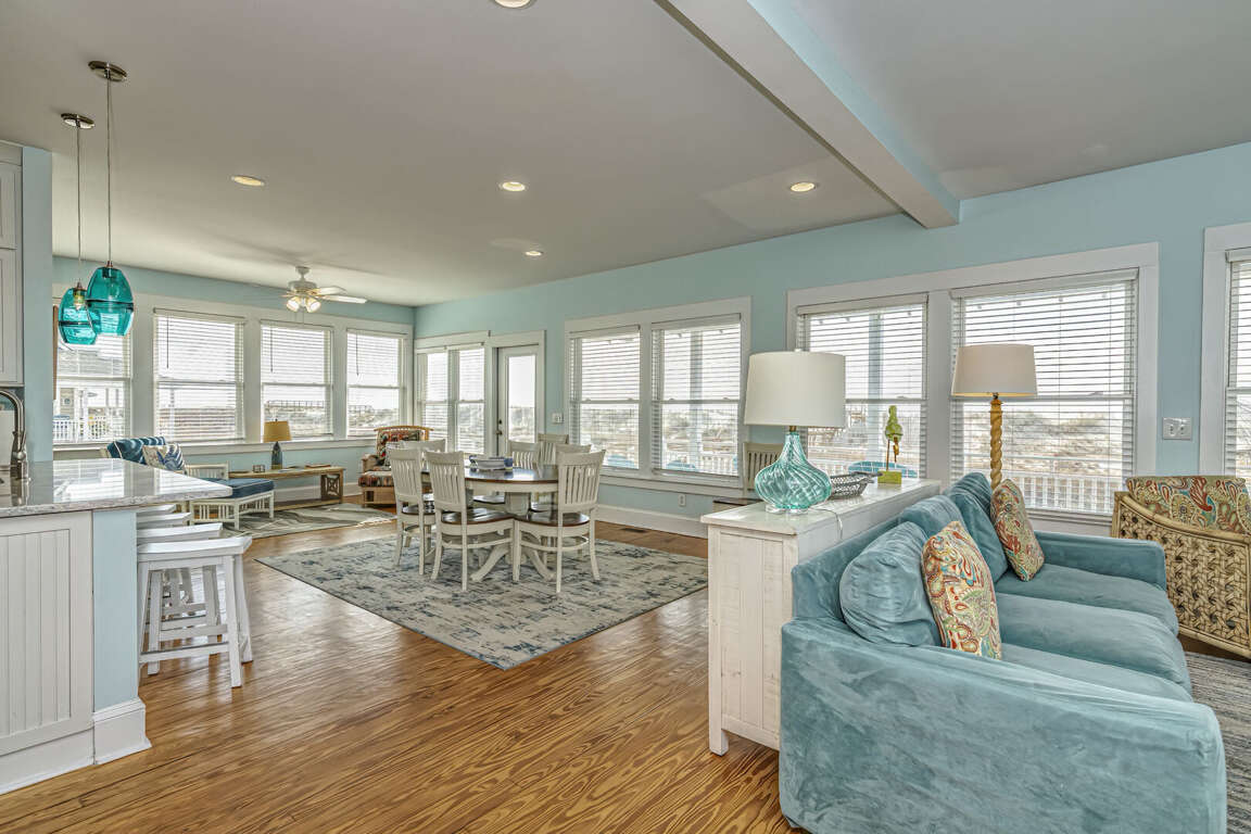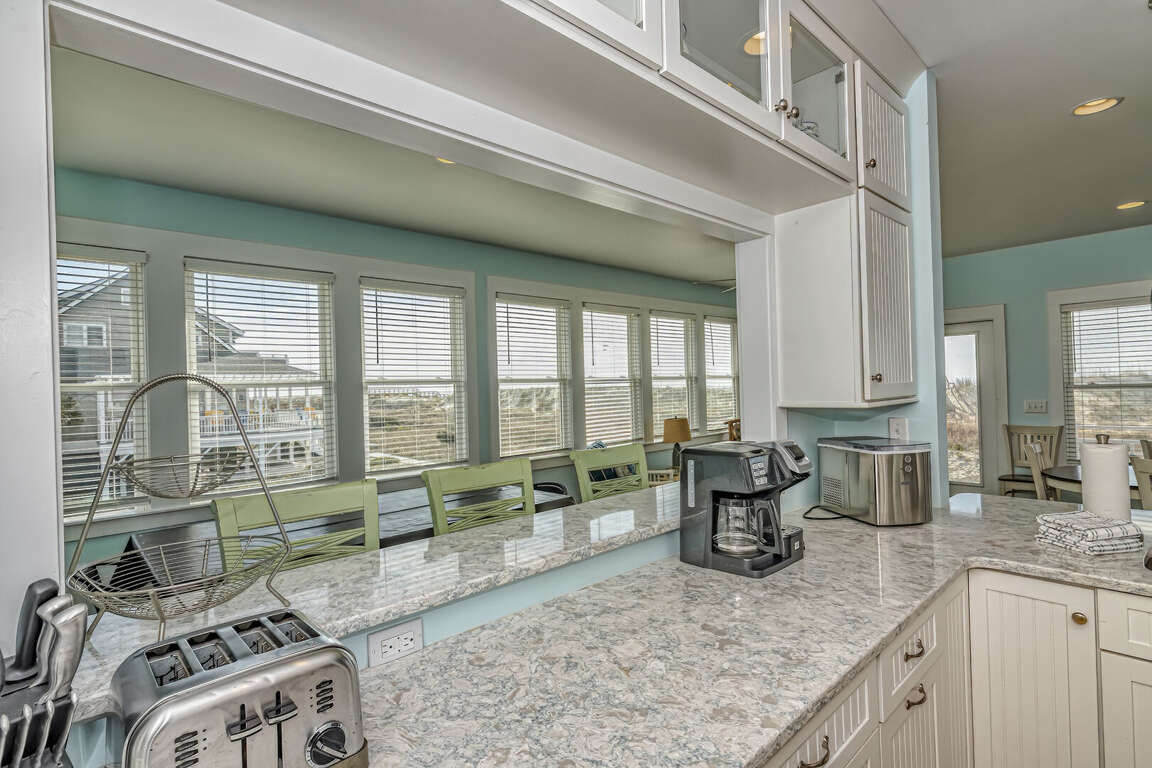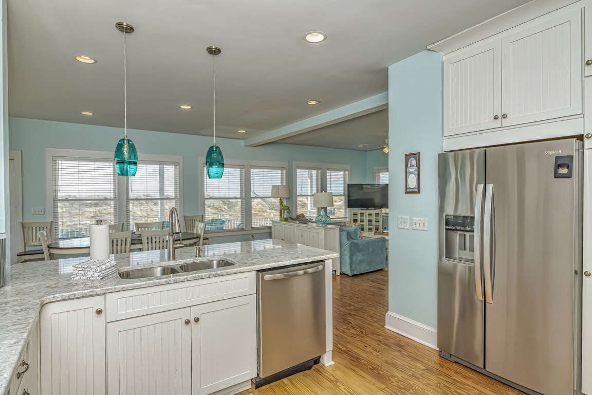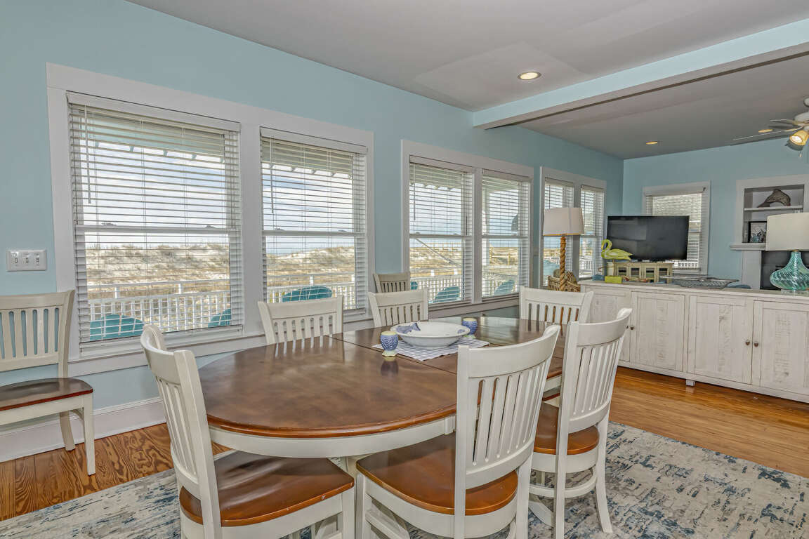 This home has been updated and is now the perfect family vacation home. The name suggests that you can relax in the porch or hammock and watch dolphins play in the surf. The property is located in a highly sought-after location on the Killegray Ridge Beach. The beach is just a few steps away from the front door. The ground floor features a brand-new custom kitchen. The main living area has a large living room, dining room and even a games room. The master bedroom downstairs has a king-sized bed and a newly renovated bathroom. A second master bedroom with a queen-sized bed and a bath is located upstairs. The third bedroom, which has twin beds, shares a bathroom and bunks with the kids' room. Every bedroom has a television.