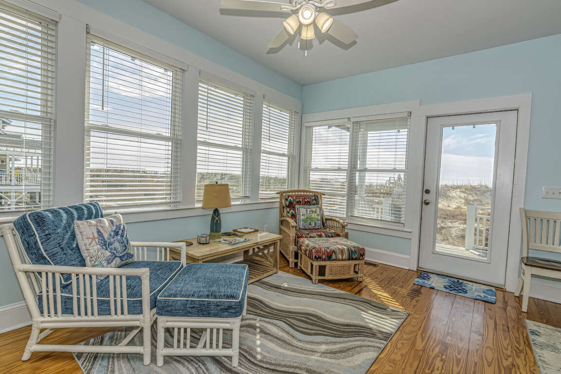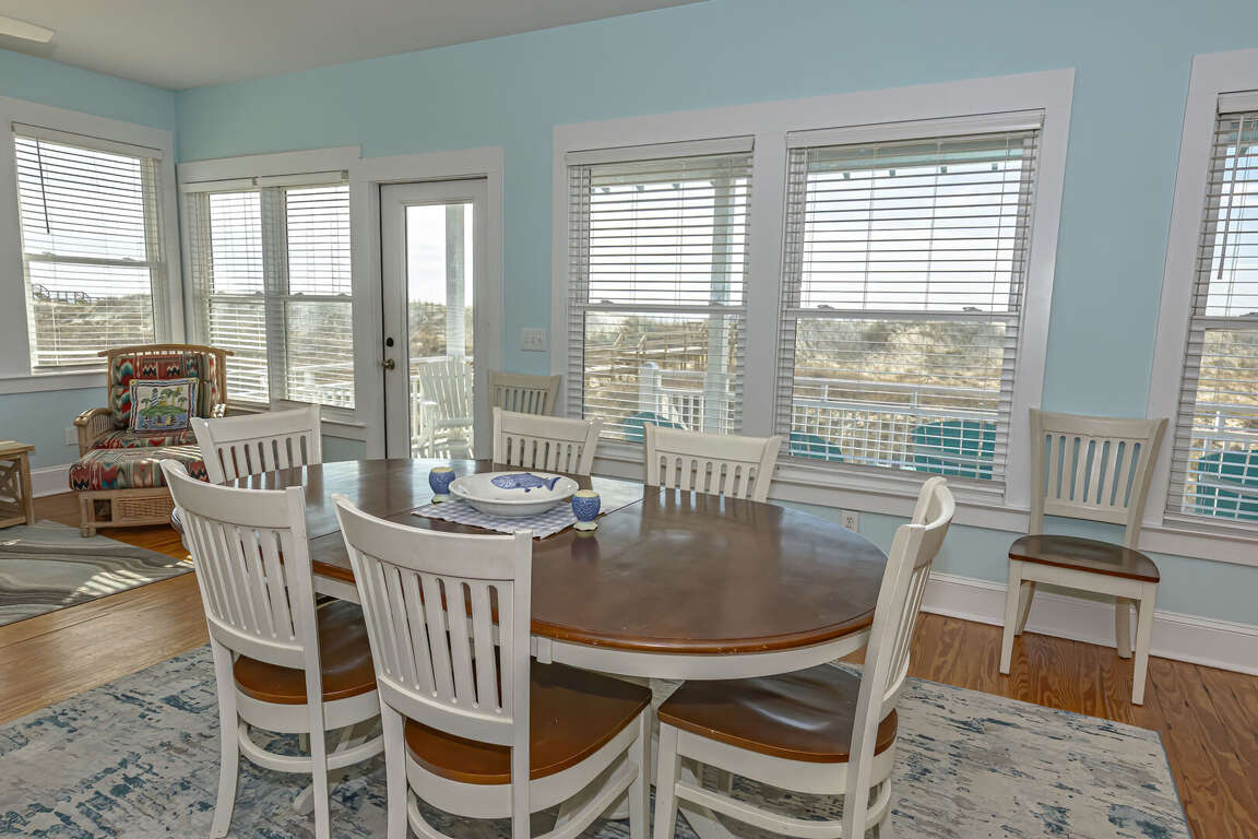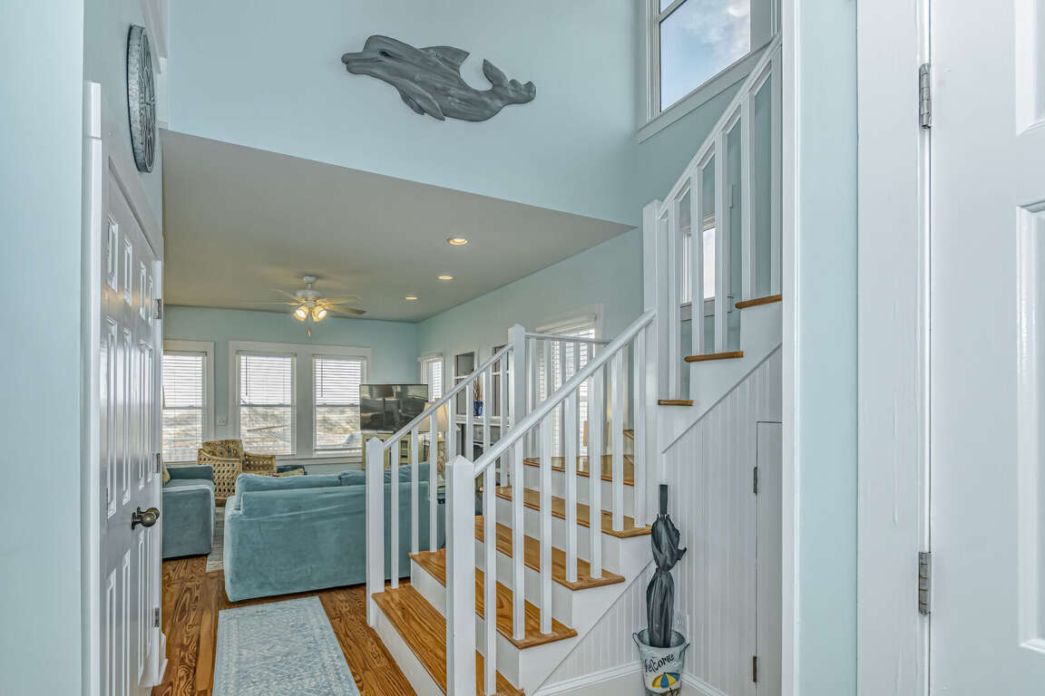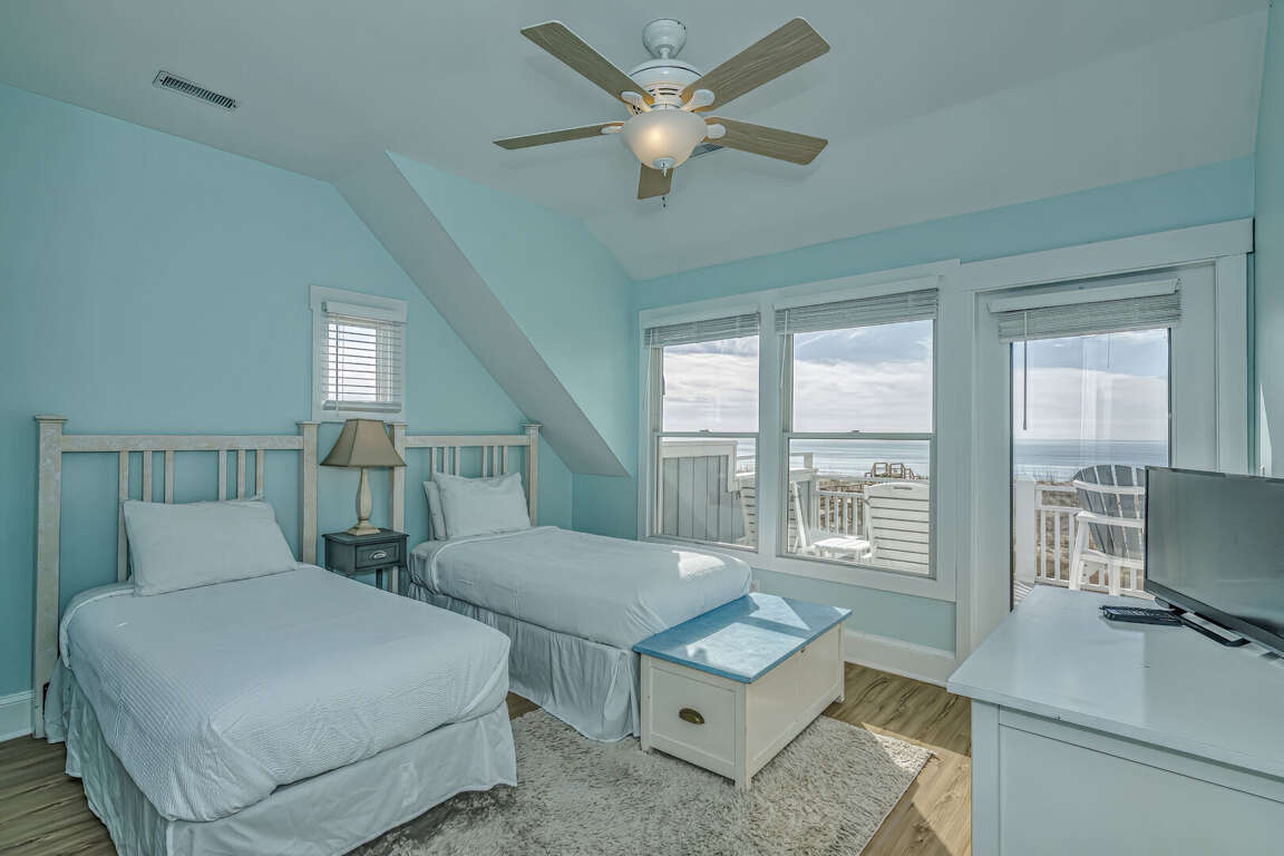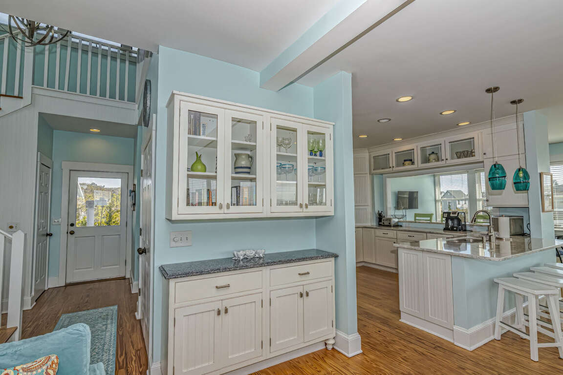 This home has been updated and is now the perfect family vacation home. The name suggests that you can relax in the porch or hammock and watch dolphins play in the surf. The property is located in a highly sought-after location on the Killegray Ridge Beach. The beach is just a few steps away from the front door. The ground floor features a brand-new custom kitchen. The main living area has a large living room, dining room and even a games room. The master bedroom downstairs has a king-sized bed and a newly renovated bathroom. A second master bedroom with a queen-sized bed and a bath is located upstairs. The third bedroom, which has twin beds, shares a bathroom and bunks with the kids' room. Every bedroom has a television.