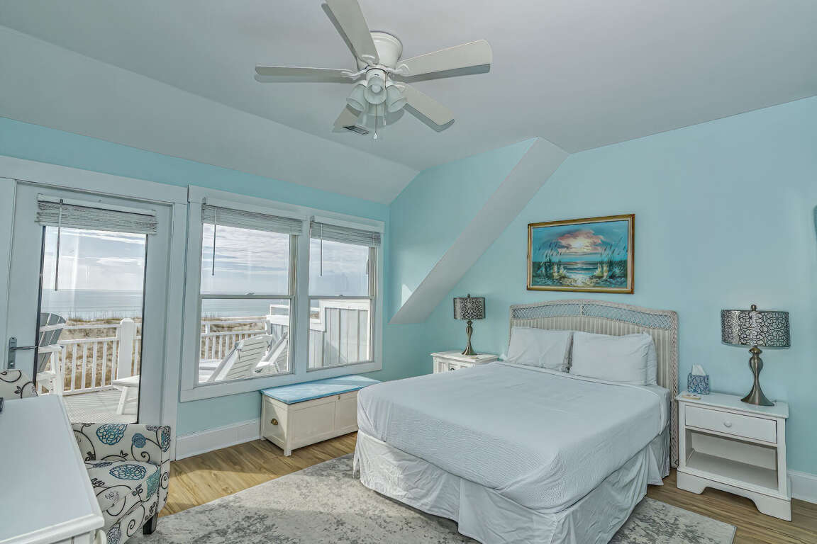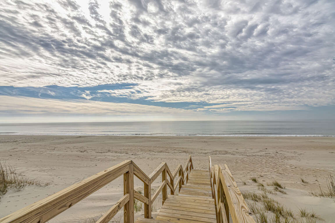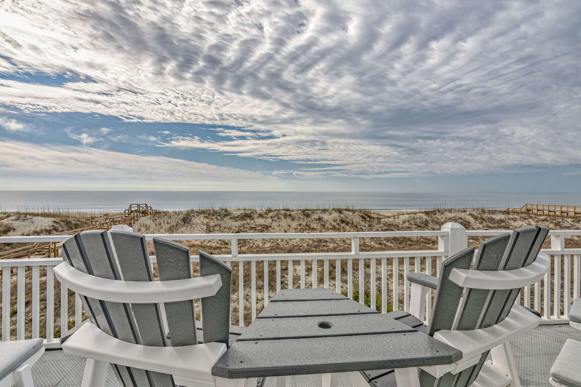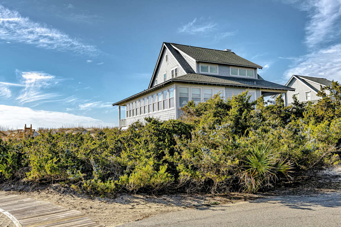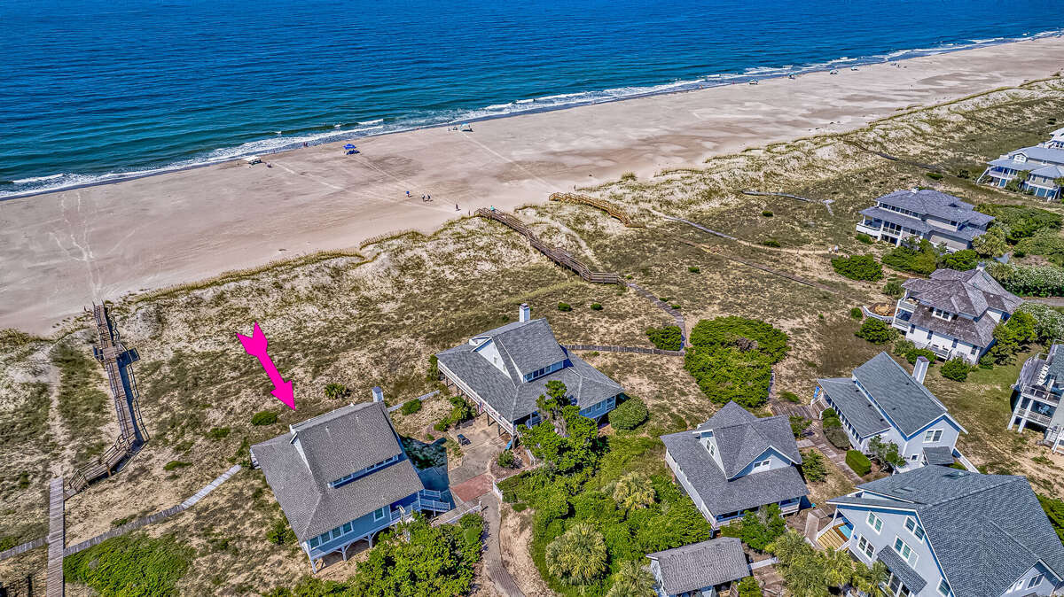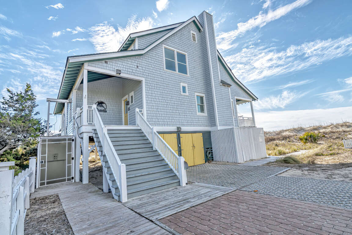 Located on the picturesque Killegray Ridge Beach in Bald Head Island, North Carolina, this spectacular 4-bedroom vacation home offers a luxurious retreat for up to 9 guests. Its beachfront location provides stunning views and easy access to the sandy shores. The interiors have been tastefully renovated, combining modern amenities with a cozy beach vibe. The brand-new custom kitchen is a culinary delight, perfect for preparing meals with family and friends. The master bedroom boasts a king-sized bed and a renovated bathroom, offering a peaceful oasis within the home. Whether relaxing on the beachfront deck or enjoying the renovated interiors, this vacation home is the ideal escape for those seeking comfort and tranquility by the sea.