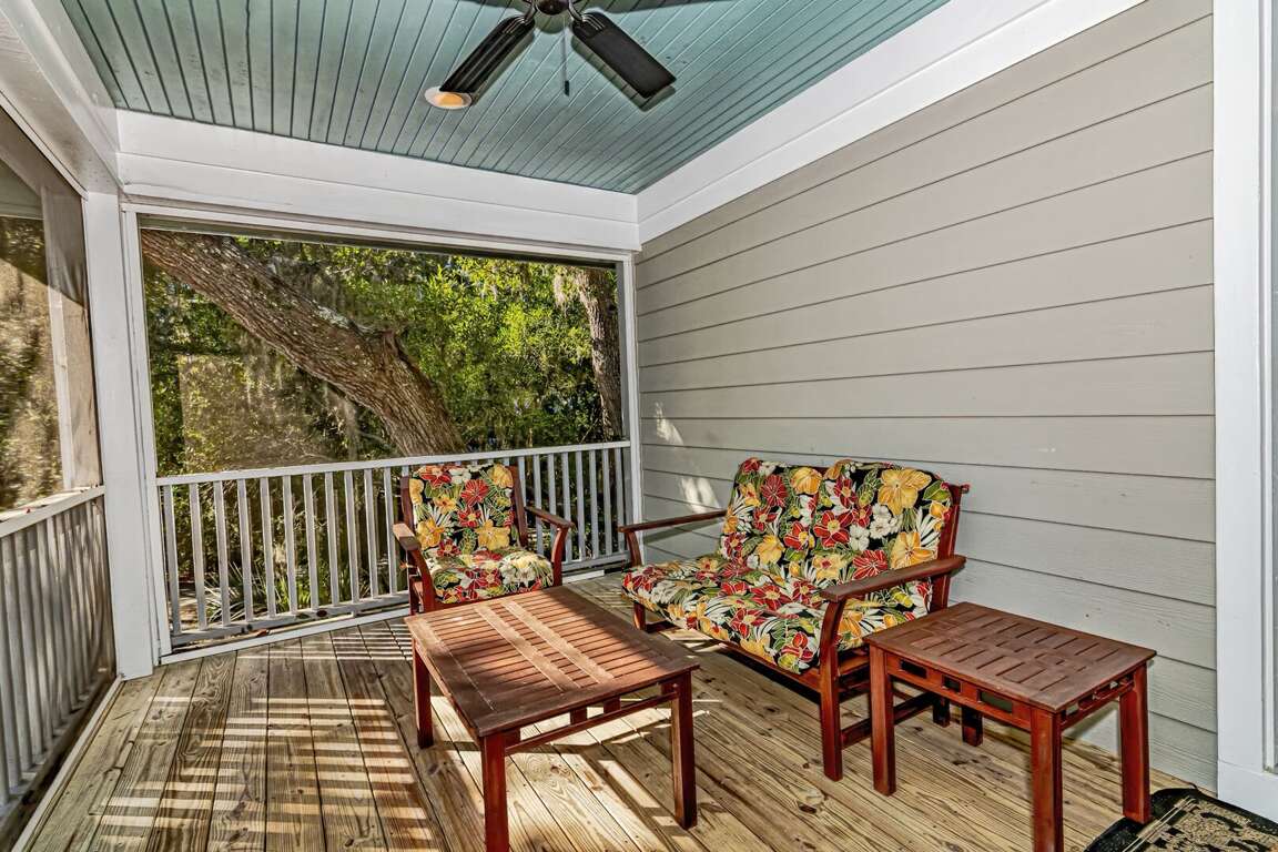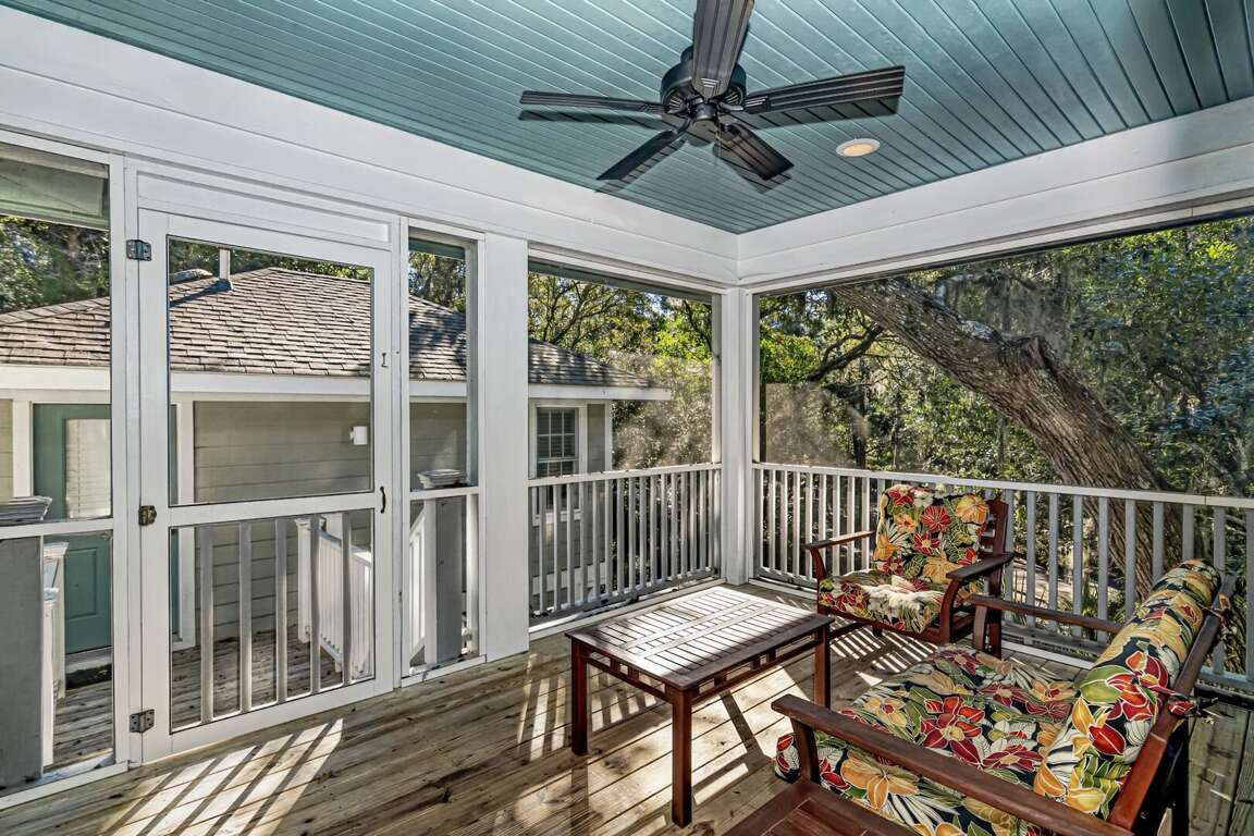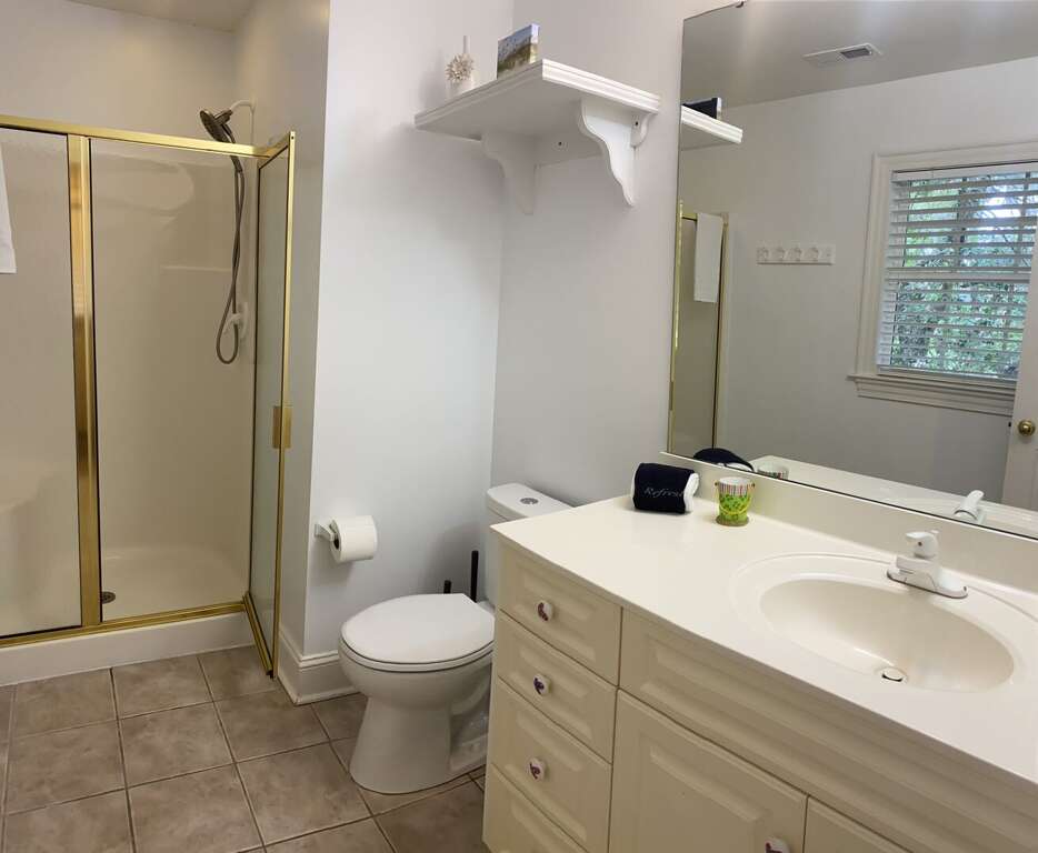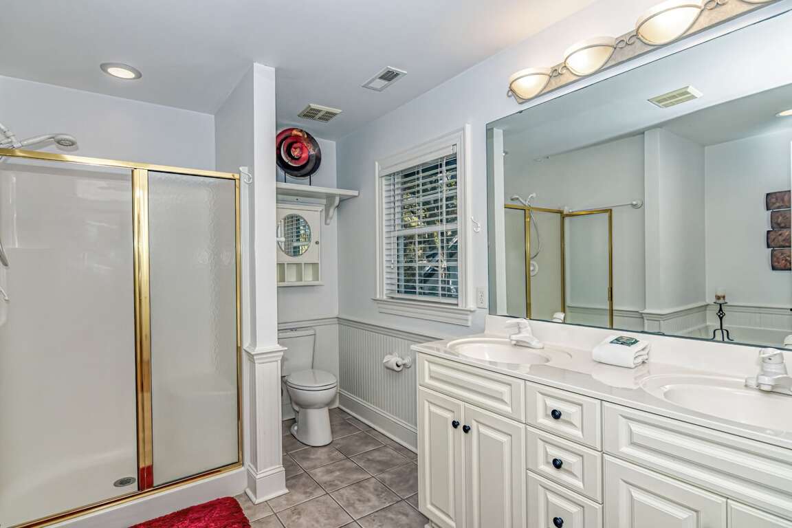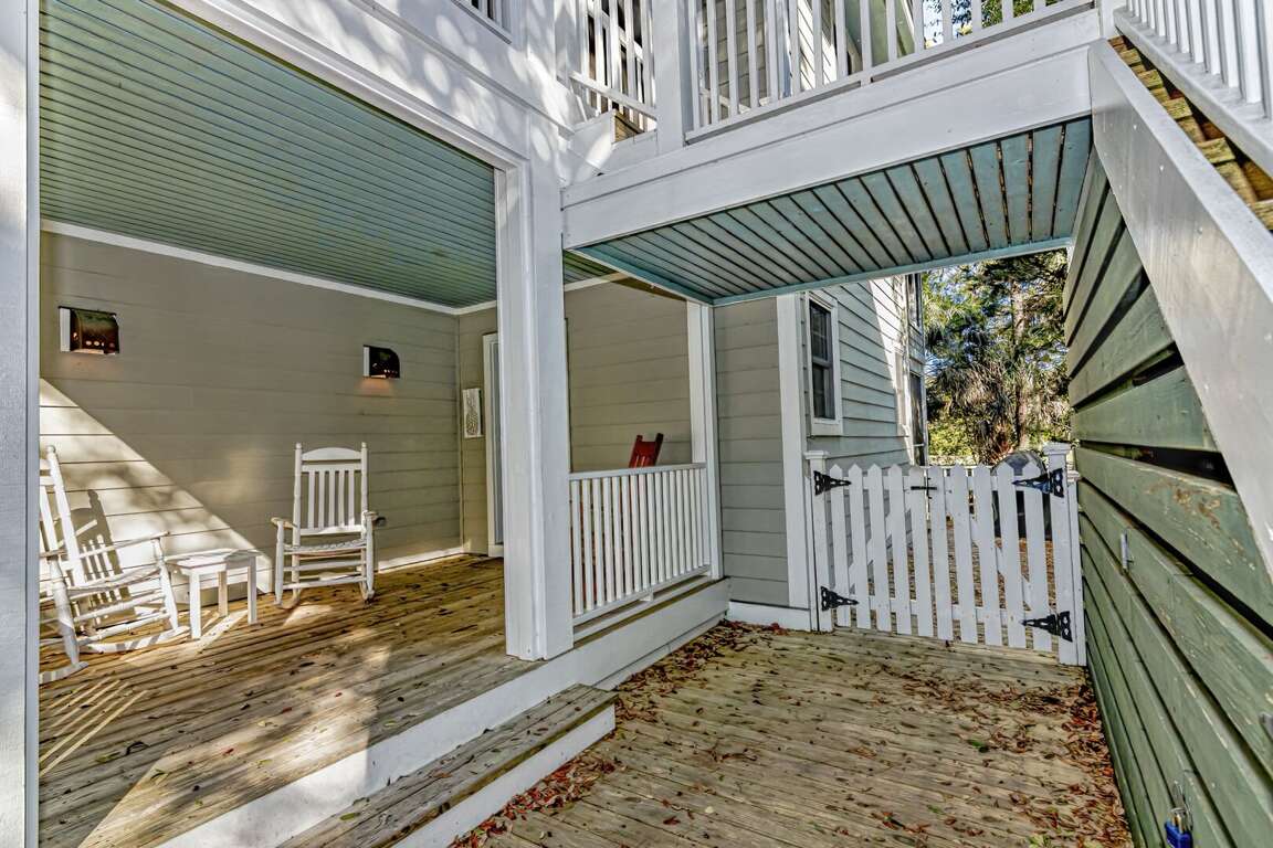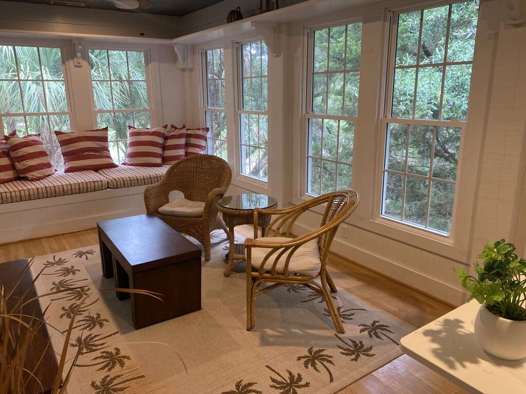Baldy's Haven offers privacy while being in the center of everything. It's located in the middle of island, close to the beach, the market, the restaurants and the clubs. The house is located on the 12th fairway, and there is plenty of space for everyone. Three bedrooms are in the main house, and one is in the crofter above the garage. Each bedroom has a TV and a full bathroom. The master bedroom suite has a sitting room that is perfect for a morning coffee in the forest or golf course. The large living area can accommodate everyone. The kitchen is spacious and well-stocked. The master bedroom is a king. The second bedroom has a queen. The kids' room has two bunk beds and a trundle. The crofter has a king size bed.
