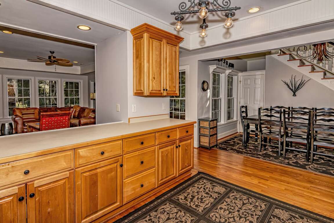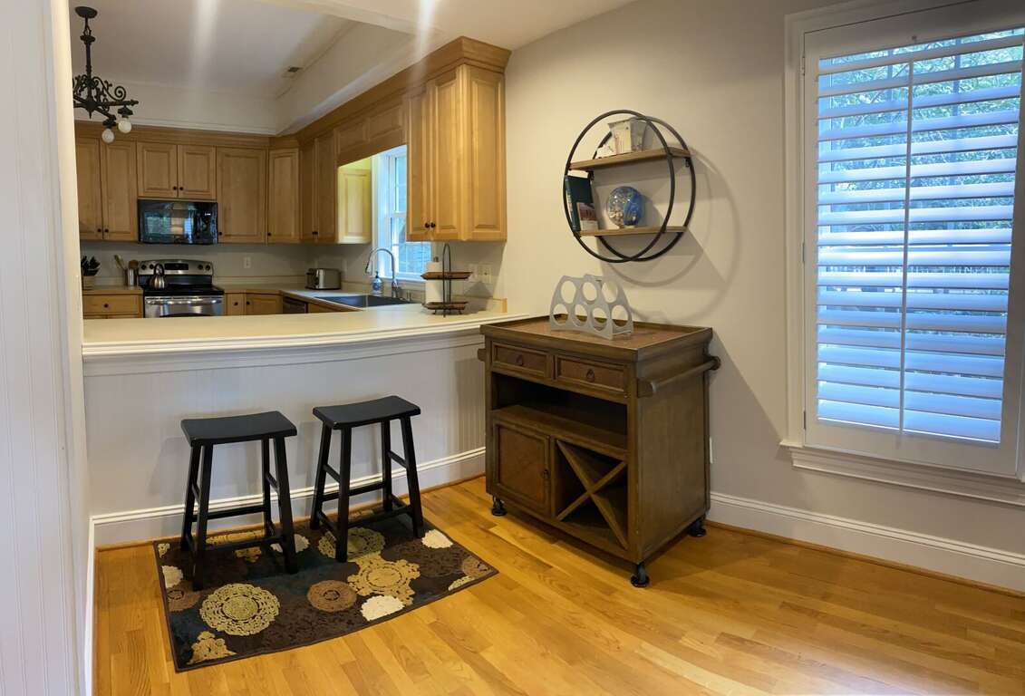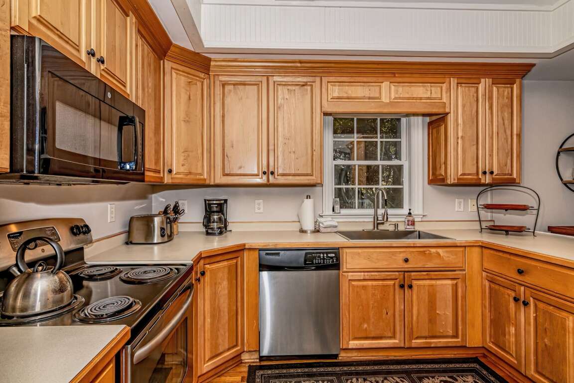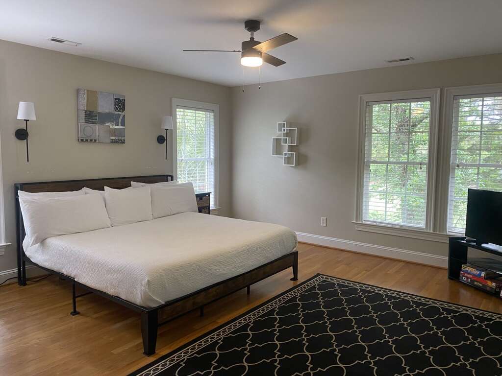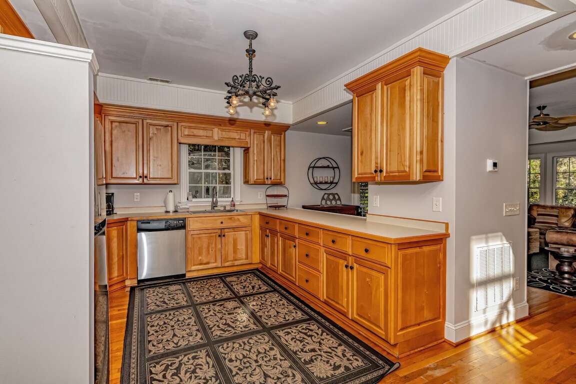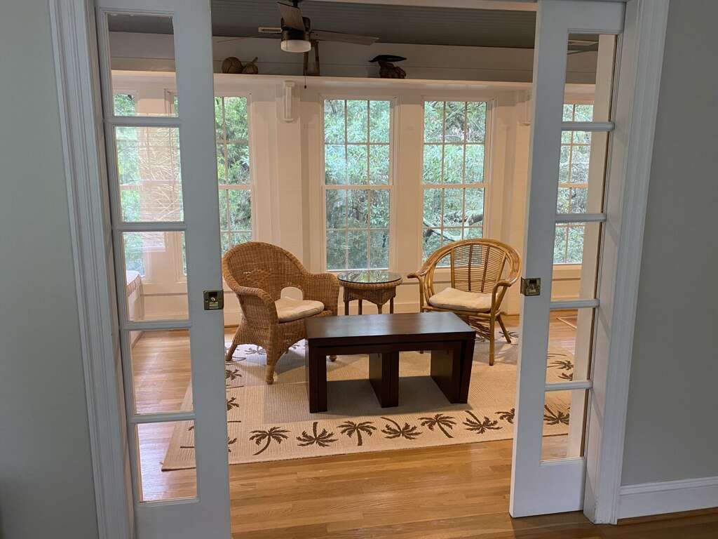 Baldy's Haven offers privacy while being in the center of everything. It's located in the middle of island, close to the beach, the market, the restaurants and the clubs. The house is located on the 12th fairway, and there is plenty of space for everyone. Three bedrooms are in the main house, and one is in the crofter above the garage. Each bedroom has a TV and a full bathroom. The master bedroom suite has a sitting room that is perfect for a morning coffee in the forest or golf course. The large living area can accommodate everyone. The kitchen is spacious and well-stocked. The master bedroom is a king. The second bedroom has a queen. The kids' room has two bunk beds and a trundle. The crofter has a king size bed.