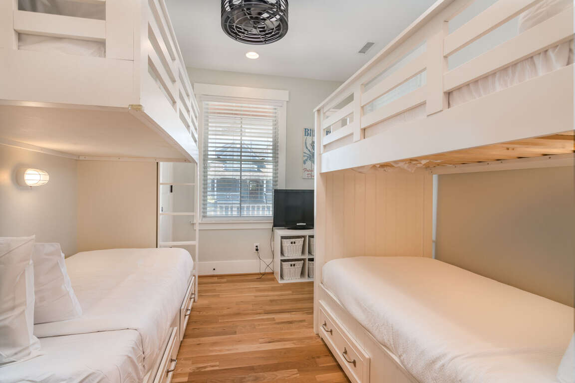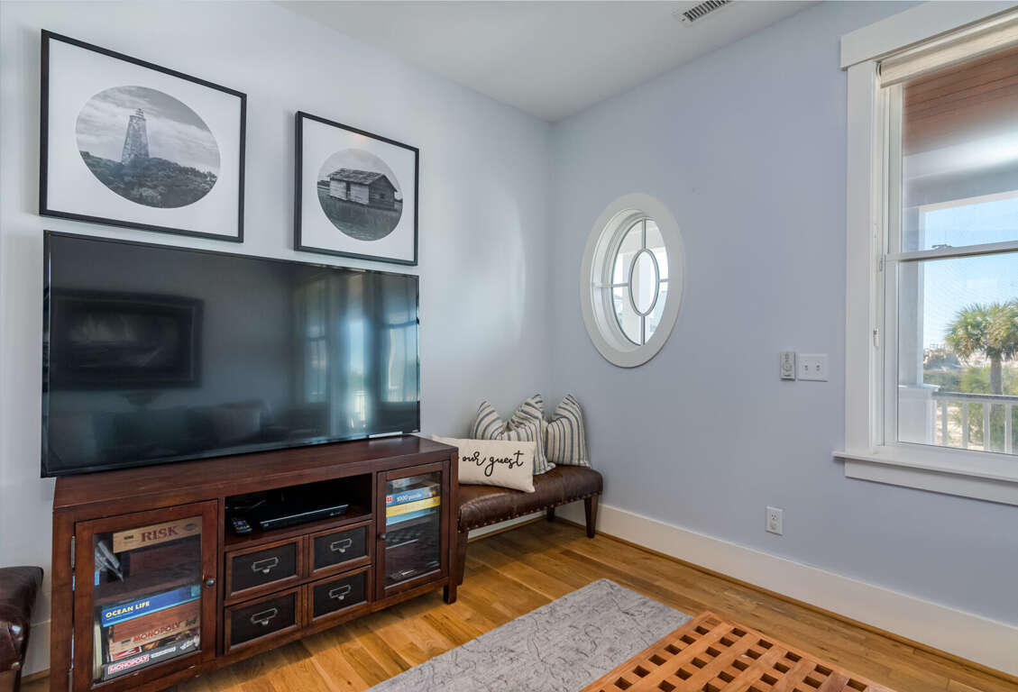 Conveniently enhancing the guest experience, the Carolina Cottage on Bald Head Island offers a range of amenities tailored for comfort and entertainment during your stay. With private beach access via a secluded walkway, guests can enjoy the pristine shores just a stone's throw away. For entertainment options, the cottage boasts TVs in each bedroom, including a large flat screen in the living area. Additionally, there is a queen size pullout sofa in the downstairs living room for extra sleeping space and kids' rooms equipped with two bunk beds and flat-screen TVs. To explore the island, golf cart rentals are available. Stay connected with Spectrum high-speed Internet provided throughout the cottage, ensuring a seamless and enjoyable getaway.
