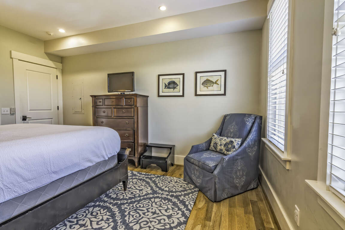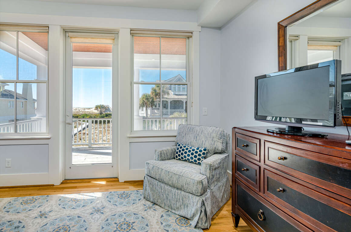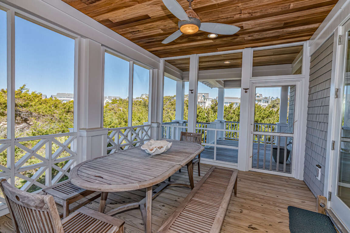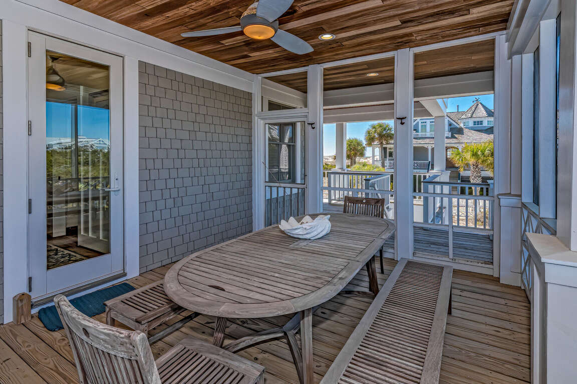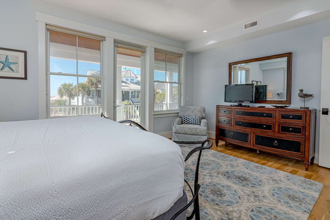 This newly constructed house, located in the Braemar area on the way to East Beach is a second row beauty with great views, and brand new décor. This house probably gets more praise than any other. Top of the range. The best of everything We hear it all. The living room is located on the second level to maximize views. There are many decks and porches to enjoy outdoor living and entertaining. Each bedroom has a full bathroom. There are TVs in each bedroom and a large flat screen in the living area. The downstairs living room has a queen size pullout sofa that can be used for extra sleeping. The kids' rooms have two bunk beds and a flat-screen TV for movies and games. The private walkway that leads to the secluded, only-used-by-neighboring homeowners beach is just a few steps away. You must see this house in person to understand what they mean.