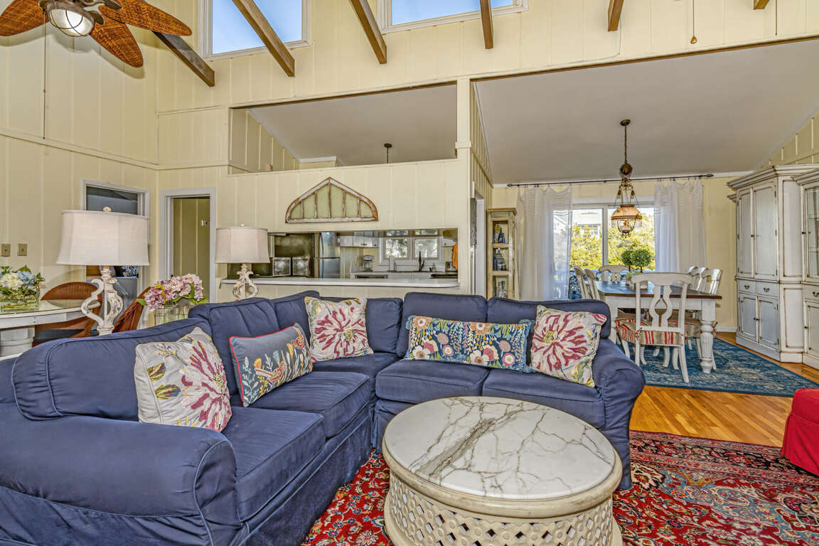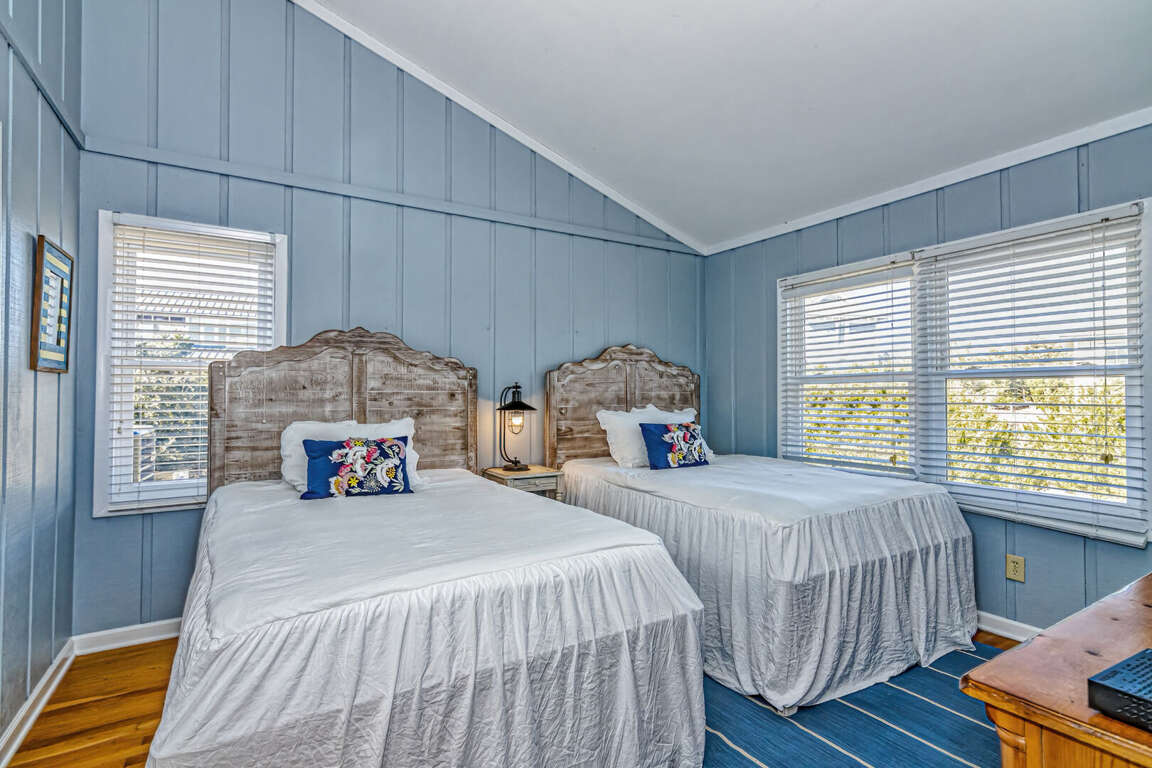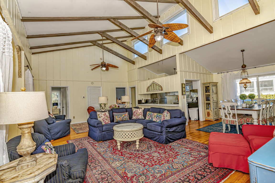This classic N.C. Beach House is charming and has plenty of extras to make it a perfect beach getaway. The spacious living room, kitchen and dining area are perfect for gathering the entire family for meals and games. There is plenty of seating for everyone. There are four bedrooms surrounding the living room. Two master bedrooms have king-sized beds, and two other rooms have twin beds. One bedroom has a bonus: a kid's loft with three twin beds and a half-bath. It is accessible by climbing up a ship's staircase on the wall. It's the perfect place for kids to get away and parents to get away. Sometimes that's what makes a vacation so wonderful. Decks in front and behind the house allow for a great view of the ocean on the other side. This house has been a favorite rental on the island for many years and has hosted countless special vacations. Next is yours.