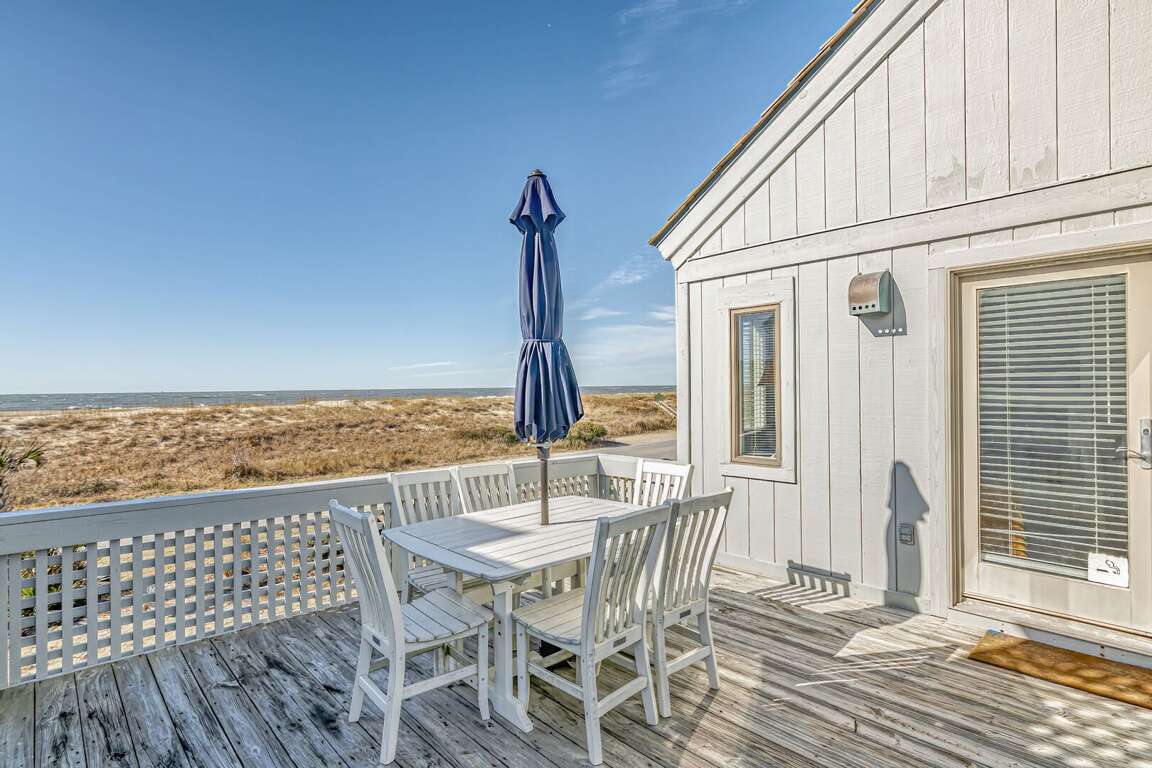 Located on the pristine shores of Bald Head Island, NC, this luxury 3 bedroom vacation rental offers an exquisite oceanfront villa with unobstructed views, perfect for accommodating up to 8 guests in its three full bathrooms. Recently renovated with wood flooring and granite counters, this villa exudes modern elegance. The property boasts stainless steel appliances and high-speed internet for convenience and comfort. Gaze out at the mesmerizing oceanfront views from the comfort of the spacious living area, or unwind on the private outdoor patio. The recent renovations have enhanced the villa's charm, creating a welcoming atmosphere for guests seeking a tranquil retreat by the sea.
