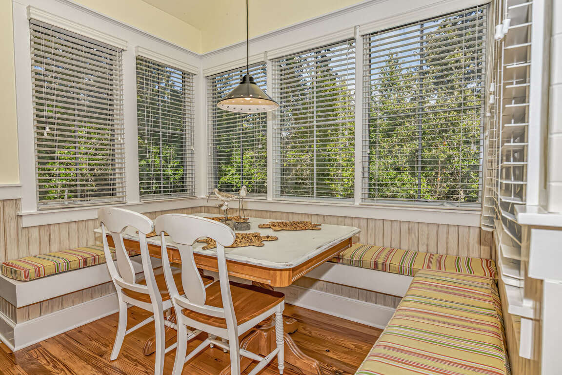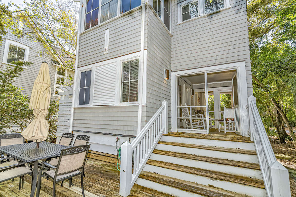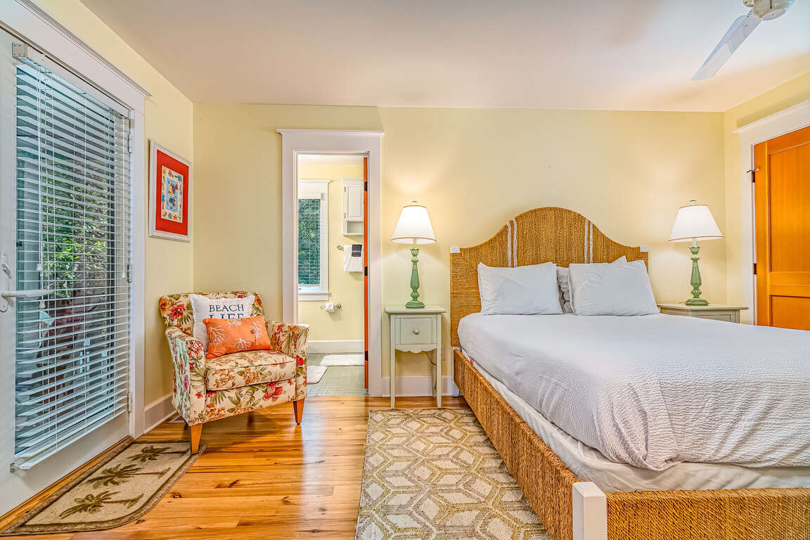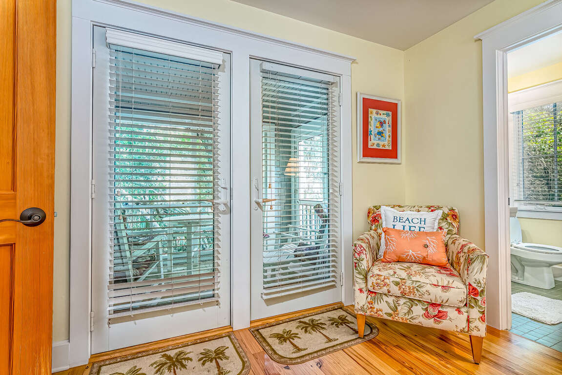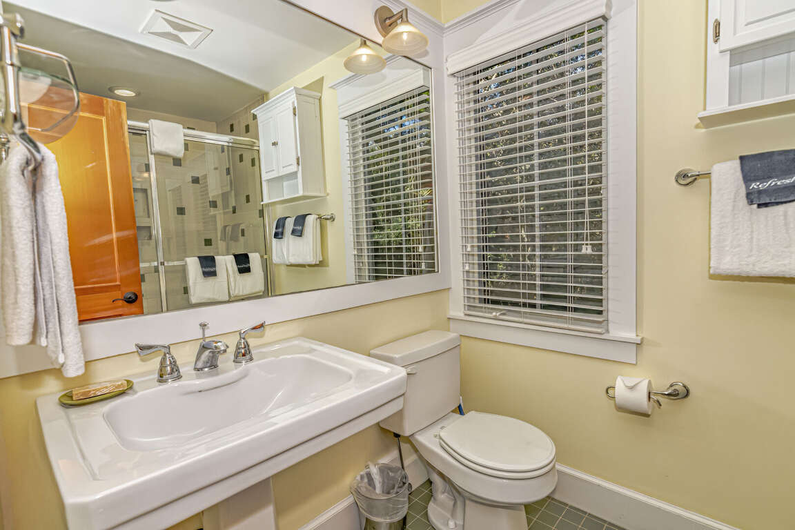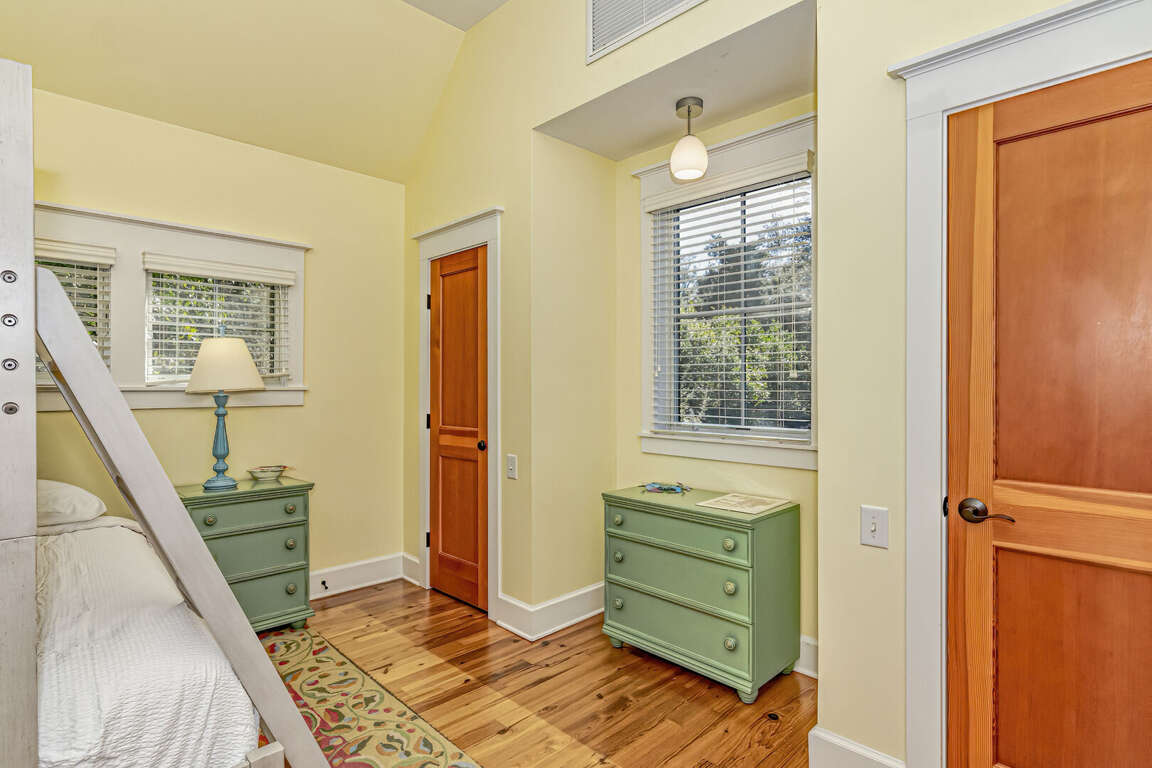 "Keepers Catch", a reversed floor plan, has one bedroom on the first floor with its own bathroom with a stand-alone shower. The upstairs bedroom has a bunkbed with a double bed on the bottom, and a twin bed on top. There is also a hall bathroom with a shower/tub combination. The living room and kitchen are located upstairs. They are fully stocked with everything you need. The downstairs has a screened-in porch where you can enjoy the wildlife sounds of Bald Head. This home comes with a 1-4 pass golf car and access to BHI club lifestyle as well as the shoals Club.