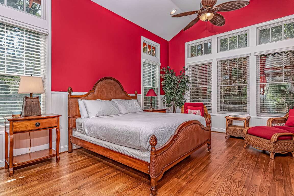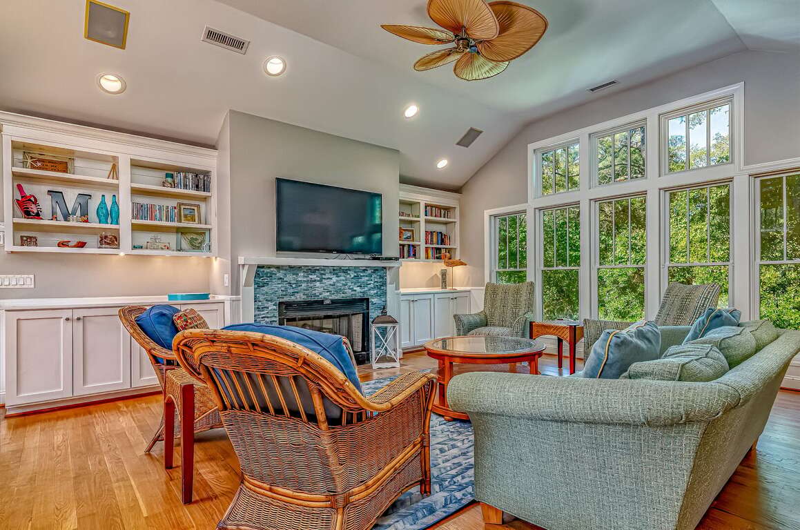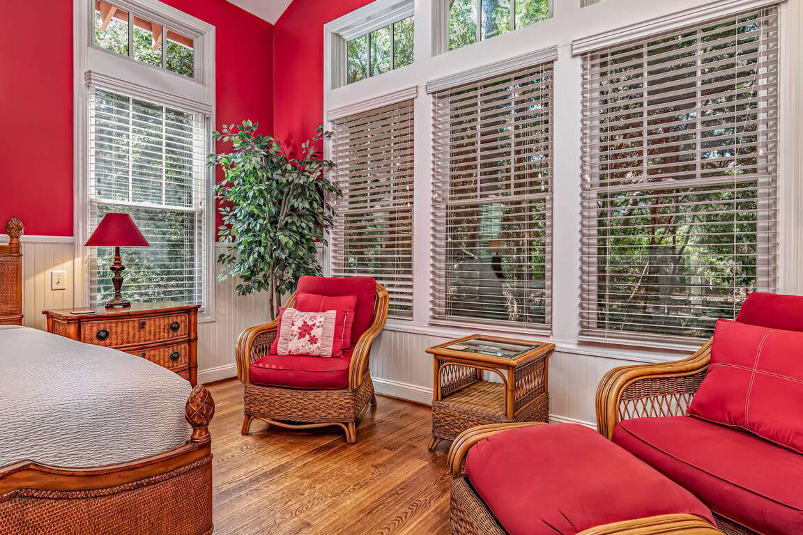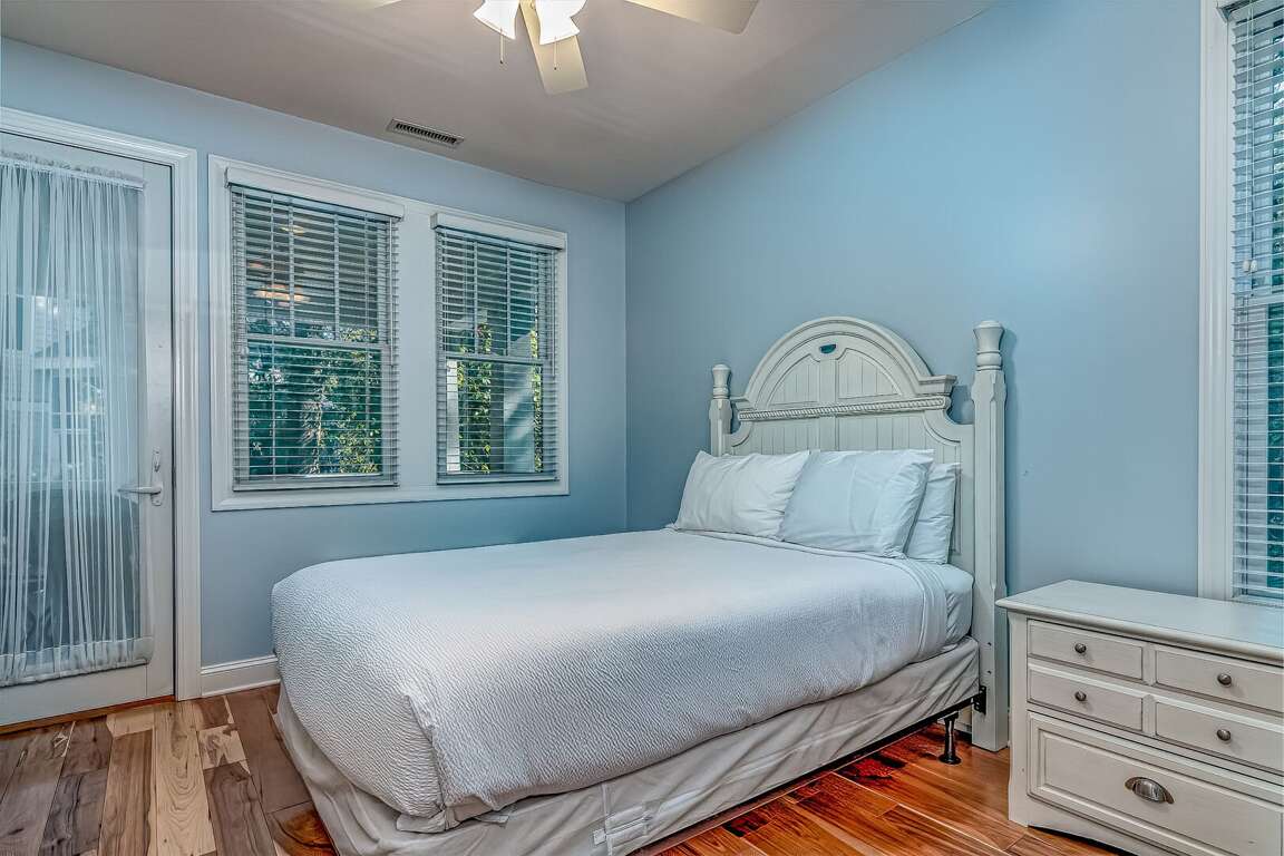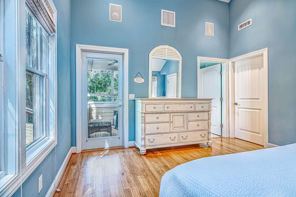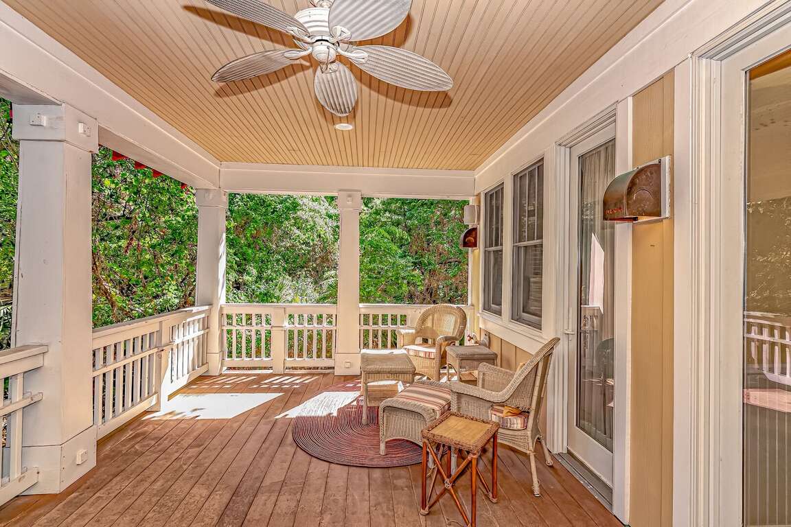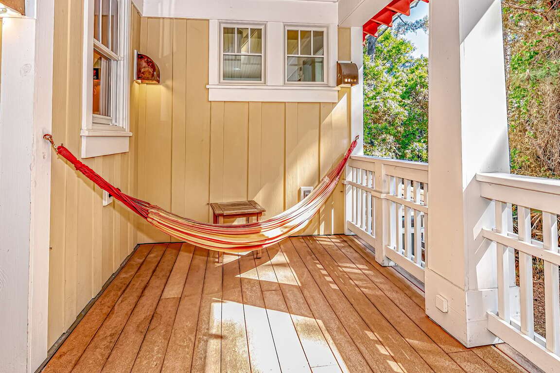 Enjoy the feeling of living on the tops of the live oaks. The reversed floor plan is perfect for entertaining family members. We have a spacious, well-stocked kitchen with plenty of comfortable seating to accommodate the entire family. The king master bedroom is located upstairs, along with a bathroom.