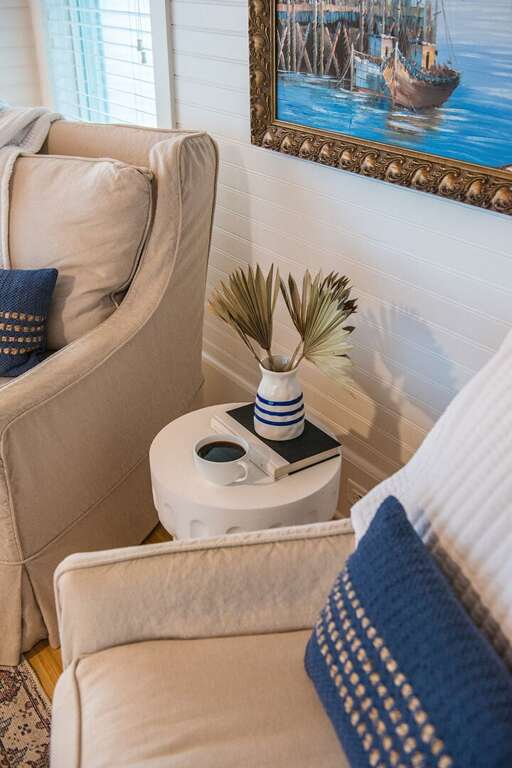 The Palmetto Place was opened in 2021 to provide a luxury getaway for couples and small family who enjoy the natural wonders of Baldhead Island. Our cedar shakes, nestled in Cape Fear Station, are a short golf cart ride from the public beach, nature trails, crabbing hole, and shops at Maritime Market. Our cozy home is the perfect place to escape from the sun, salt air and other elements. It offers modern amenities, quality bedding and updated decor, so you can relax and rejuvenate. Only bring a bottle of red wine.