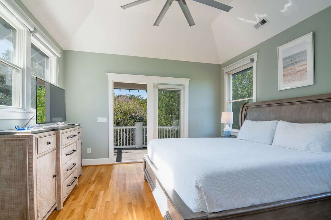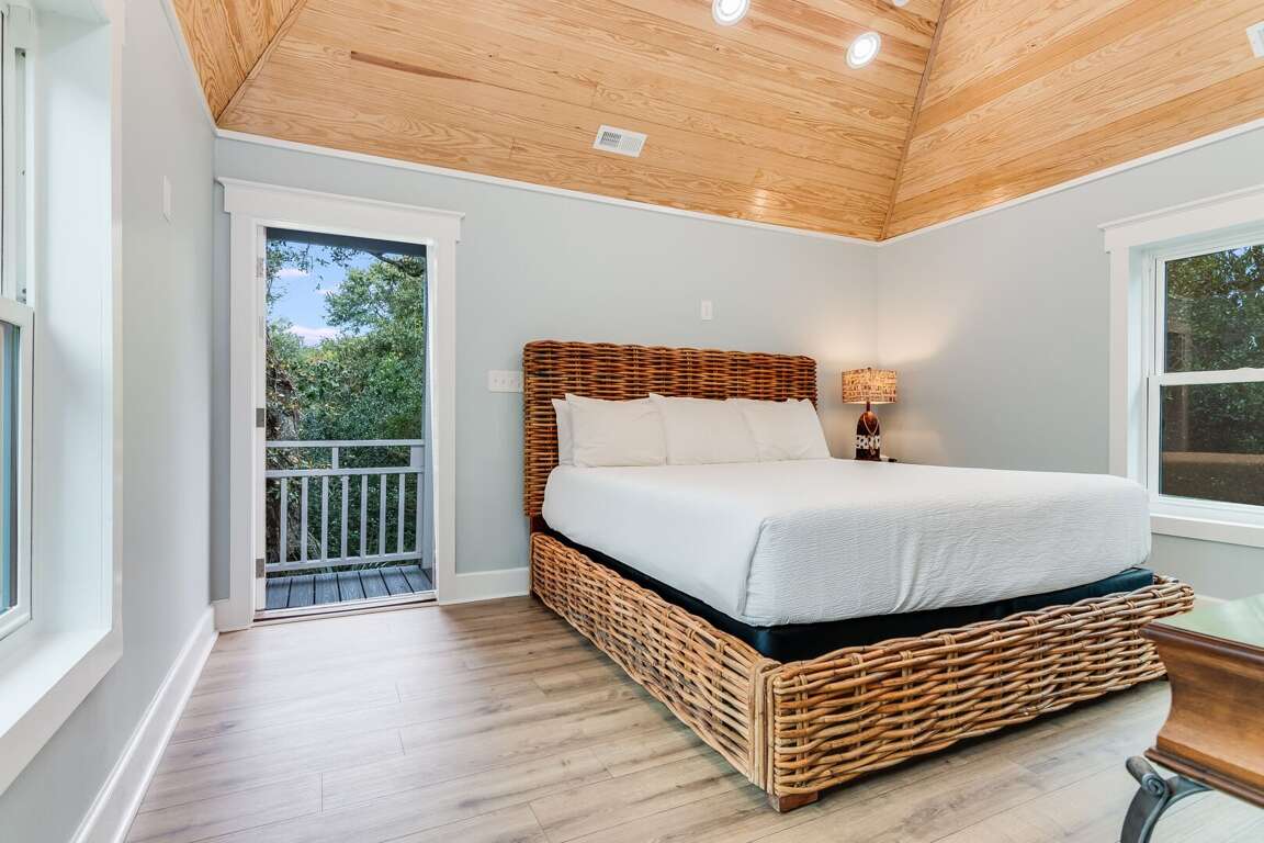 Escape to a forest oasis at "Beach Paws", located on Baldhead Island. This home is conveniently located near the East Beach and the Shoals Club. It's the perfect getaway for the whole family. This 6 bedroom home has plenty of room for everyone to feel comfortable. There are porches on each level and a large deck area perfect for grilling in the afternoon. Enjoy the reversed floor plan with four bedrooms downstairs (2 doubles, one King, one Double & One Twin & One King), each bedroom having its own private bathroom. The upstairs features a large living area with plenty of seating, along with another master bedroom with a King bed and attached bathroom. This home has its own private crofter, which includes a king-sized bed and an attached bathroom. This home is also pet-friendly, so you can bring your furr babies along. All dogs love Bald Head. You can cruise in 2 golf carts (1-4 & 1-6 passes) and have access to the BHI Club & Shoals Club if you purchase them separately.