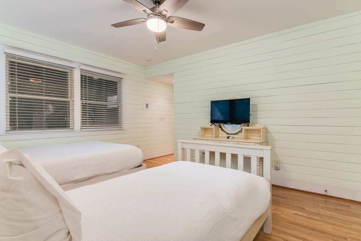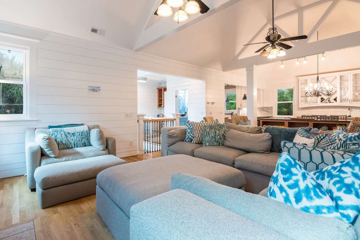 The property boasts six bedrooms and can accommodate up to 15 guests, offering a convenient location near East Beach and Shoals Club. The floor plan features a reversed layout, with four bedrooms and two bathrooms downstairs, while the upstairs area comprises a spacious living area and an additional master bedroom with an attached bathroom. This arrangement provides ample space for guests to relax and enjoy their freedom. The bedroom arrangement ensures that there is plenty of room for everyone to have their own space while still enjoying the communal areas. Whether guests are seeking privacy or socializing, the thoughtfully designed floor plan caters to their needs. This setup allows for a comfortable and enjoyable stay for all, making it an ideal choice for those desiring freedom and flexibility.