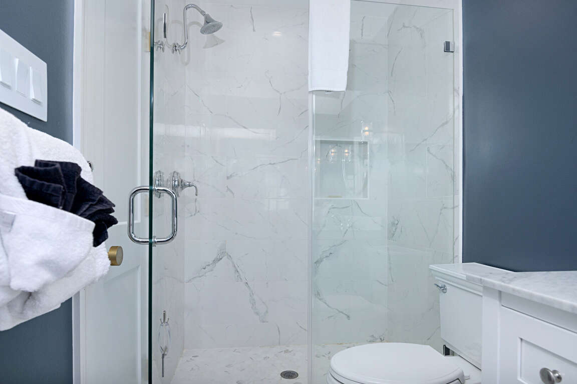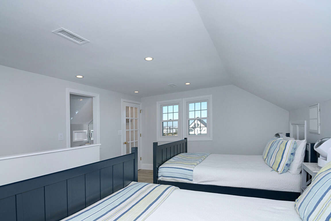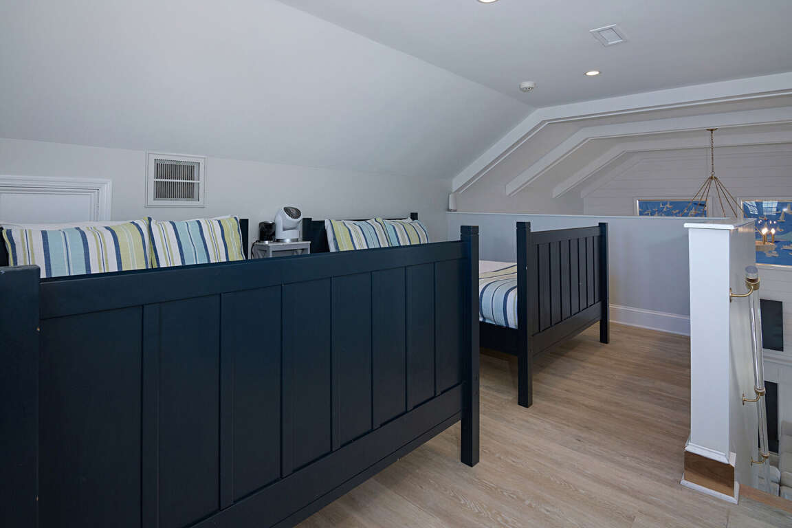 On the main floor we have two master suites, each with a Queen bed and full bath. The sleeping loft upstairs has (2) double bed with an additional full bath.