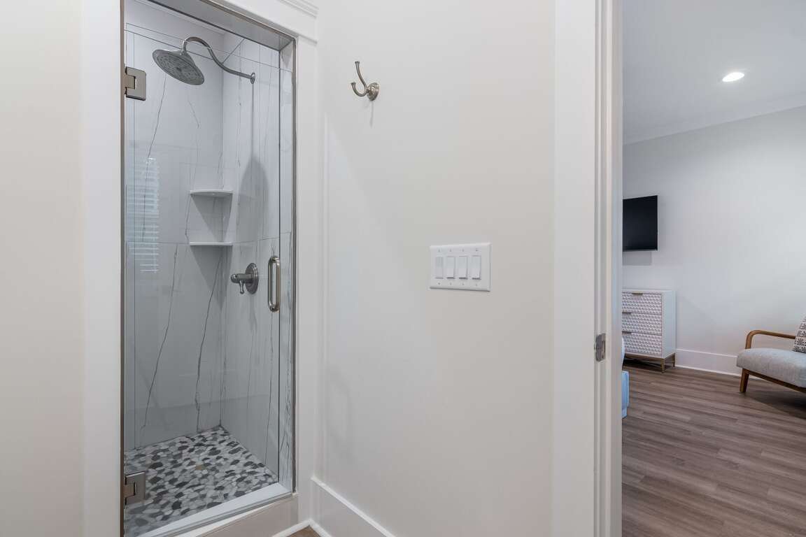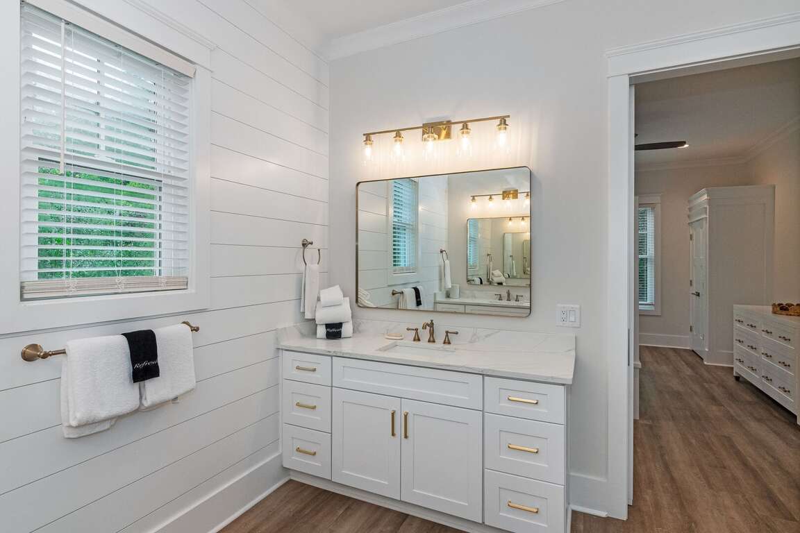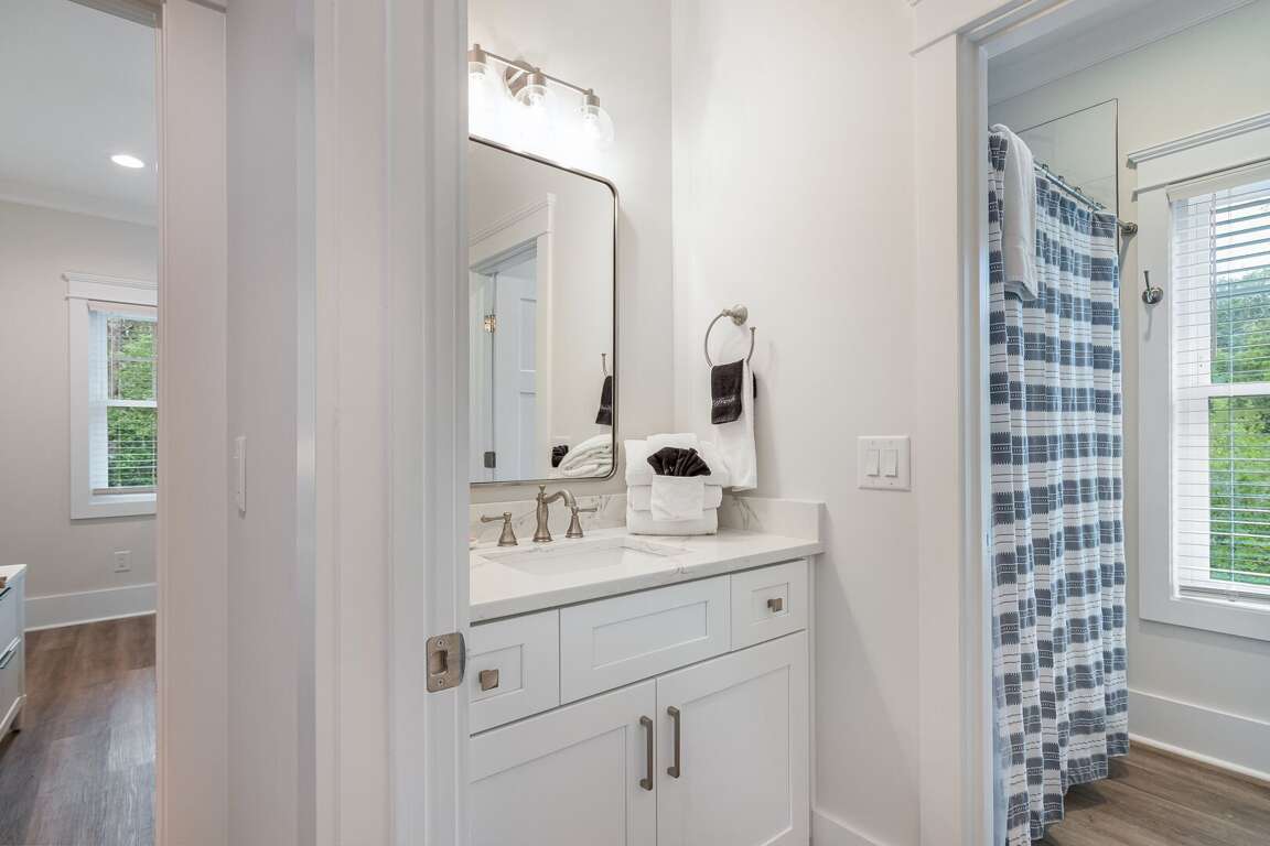Seabbatical is the perfect place to relax on Bald Head Island. This brand new 6 Bedroom 4.5 Bath house is located in the Live Oaks Forest of the Maritime Forest. This floor plan provides plenty of space for the entire family. The downstairs includes the living room, large screened-in porch and kitchen. The master king bedroom is also downstairs, with its own bathroom. It has a walk-in shower and two large vanities. Two queen bedrooms are located upstairs with a common bath. Through the breezeway, you will find a kids' living room/playroom and two additional bedrooms. One of these bedrooms has two twin bunk beds while the other has two twins. Live Oak Trail is located in the center of the island, close to all the great amenities such as the maritime market and shops. Come "Sea Us" in our new home at Live Oak Trail.