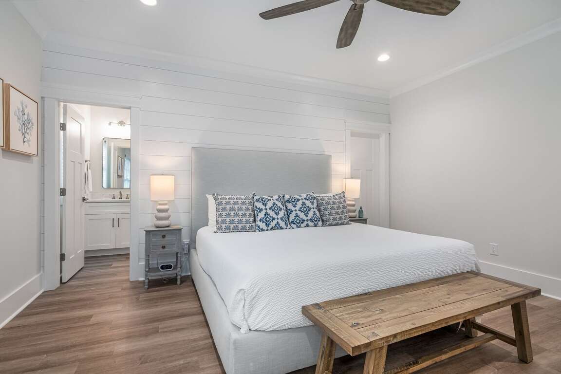 This luxury house for rent in Bald Head Island, NC offers six bedrooms, accommodating up to 14 guests, and boasts an array of modern amenities and features for a comfortable and enjoyable stay. The interior design is elegantly appointed, blending coastal charm with contemporary comforts. Guests can relax in the spacious living areas, beautifully furnished and designed for relaxation. The property also features a fully stocked kitchen, perfect for preparing delicious meals. Outside, the outdoor spaces are equally impressive, with a large screened-in porch ideal for enjoying the island breeze. Whether lounging in the sun or dining al fresco, the outdoor areas provide a serene retreat. This luxury house offers a seamless blend of indoor luxury and outdoor tranquility for an unforgettable vacation experience.