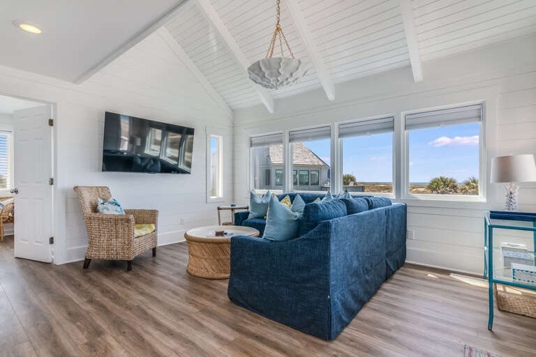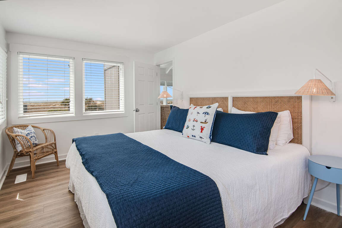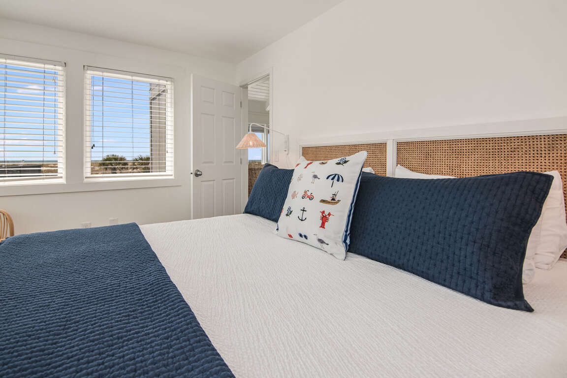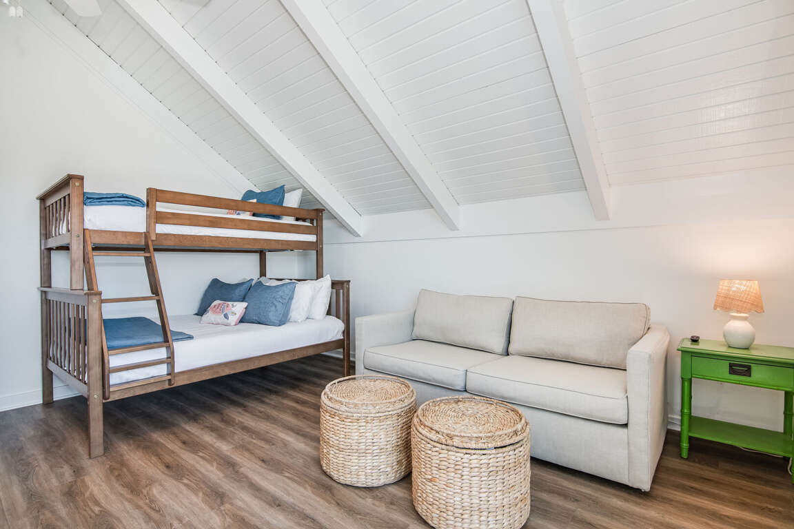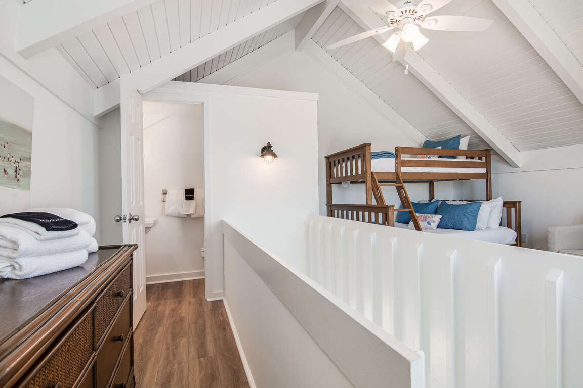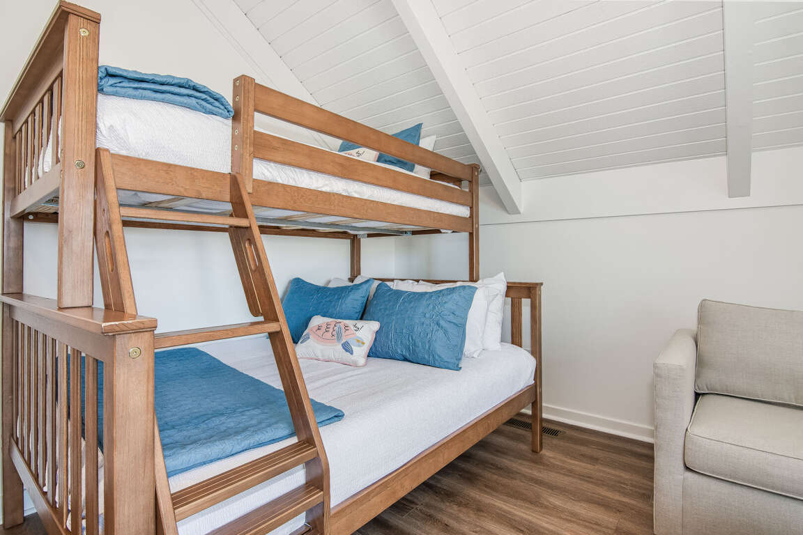 Sit and gaze at the sunset and stars at night with this ocean front villa featuring three bedrooms and two and a half bathrooms. The downstairs has the living area, kitchen and two bedrooms. The primary bedroom will have a king bed; the second bedroom with a queen. The upstairs loft has one bunk with a double on bottom and twin on top and a memory foam sleeper sofa with its own half bath perfect for the kiddos. Enjoy sitting on the loft deck or the main deck off the living space and enjoying the ocean breeze. Being within walking distance to the beach access and the BHI club this villa is the perfect family vacation. Bald Head Island Club lifestyle membership is available for separate purchase.