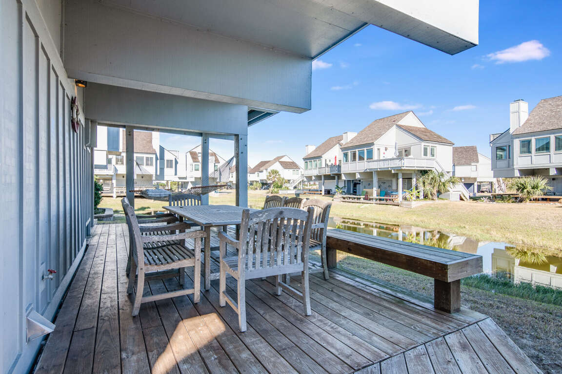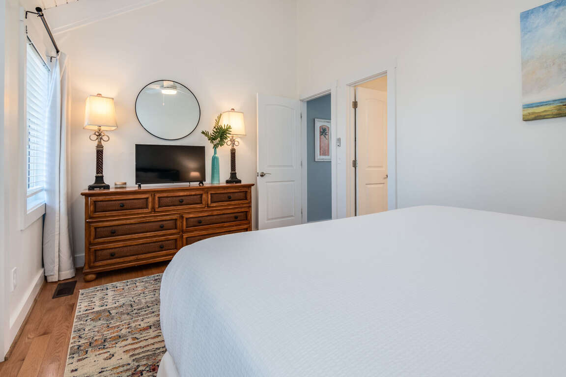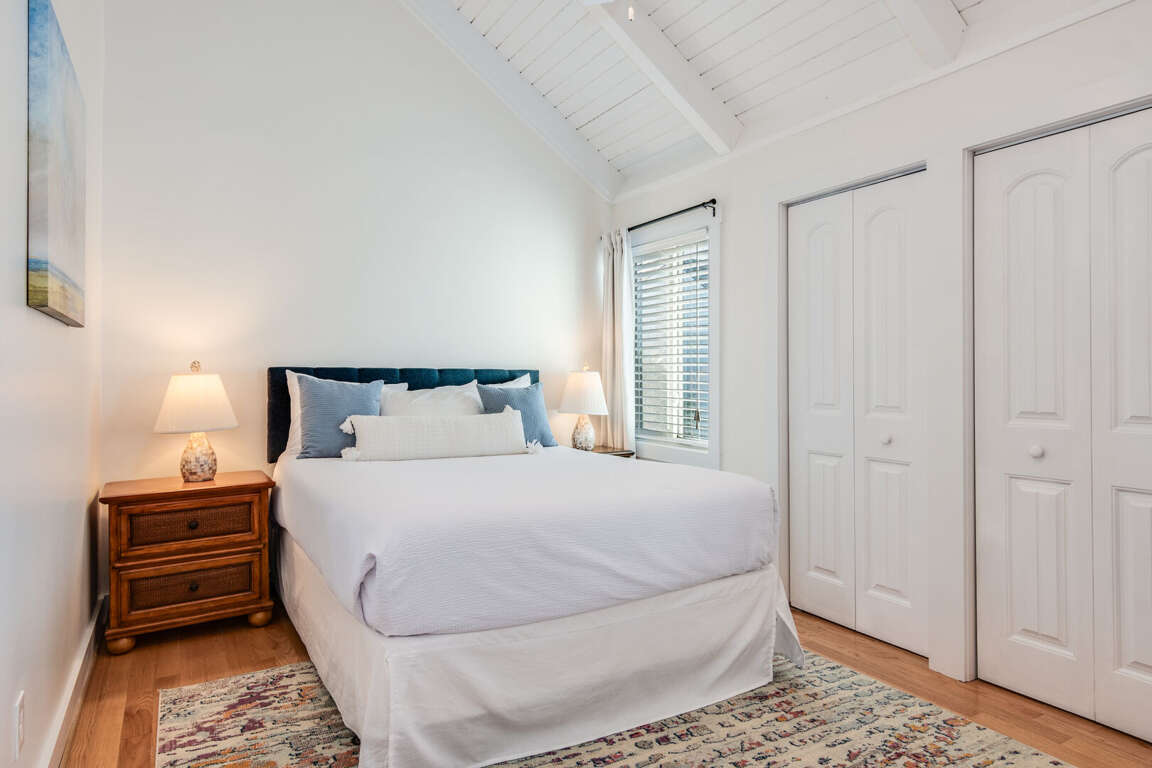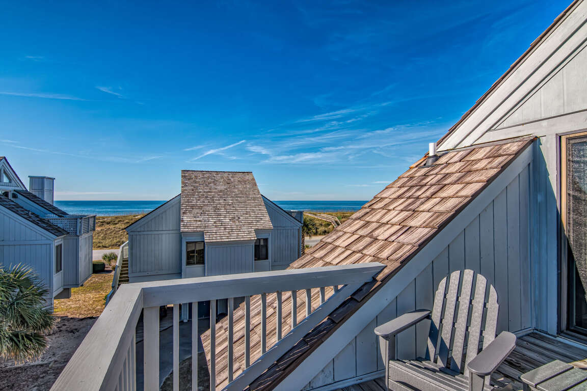 Come and visit our charming three bedroom Villa located on Bald Head Island! Not only does this home have Ocean Views from the loft deck, but you can also enjoy golf course and lagoon views from the front deck leaving you with 360 views of Bald Head. The downstairs has a newly renovated kitchen and spacious living room with a wet bar. In the hall you will find a bathroom with a shower tub combo which also has a separate door connecting to the queen bedroom. The downstairs by the living room also has a private master king suite with attached bathroom with a stand up tiled shower. The loft offers great space with two queen beds, a half bath and its down private balcony overlooking views of South Bald Head and the ocean. Come visit us at “Glendalough” for your island oasis!