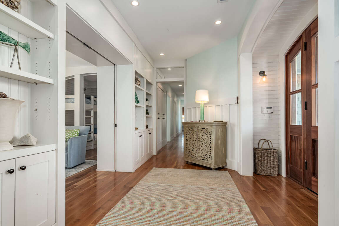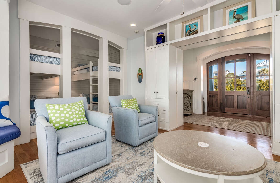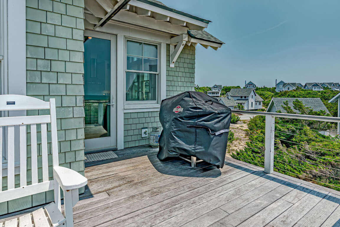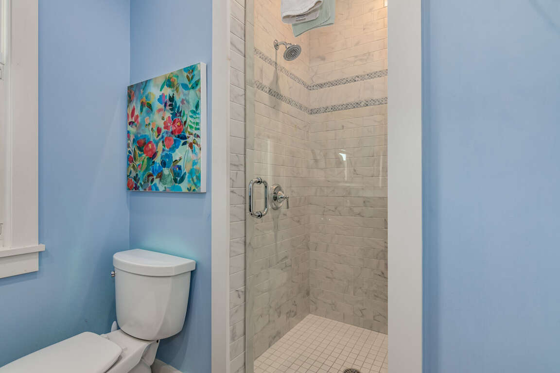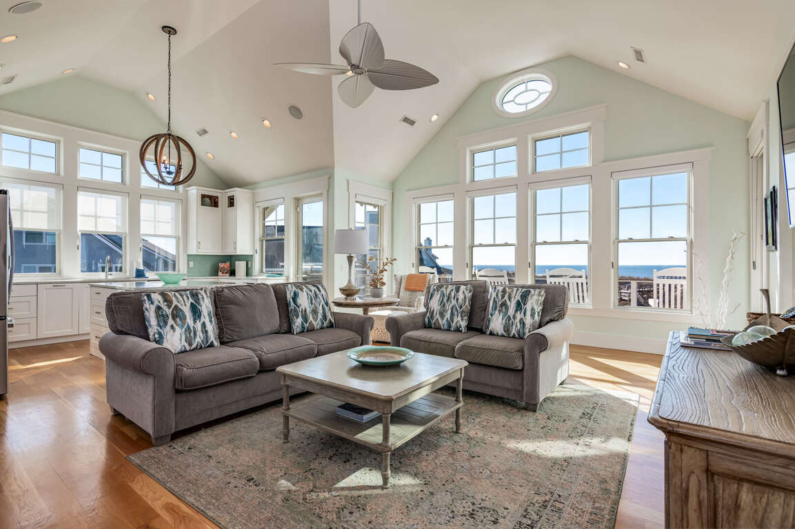 Welcome to your dream vacation spot - a beautifully updated five-bedroom home, showcasing breathtaking views of the ocean from Bald Head Island's southern coastline. With a clever reverse floor plan, the house ensures you can relish the serene panorama at all times. On the ground floor, discover four charming bedrooms. The queen suite comes with a walk-in shower, while a fun-filled kids' room boasts two bunk beds and its own living area, perfect for youthful fun. Down the hall, uncover another bathroom with a stand-up shower, and two more queen bedrooms, one of which features a shower/tub combo. Venture upstairs to uncover a cozy living space, complete with an updated kitchen equipped with everything you need for your culinary adventures. The final gem on this level is the master suite with a king bed and an en-suite bathroom featuring a tiled stand-up shower. This room also offers you a private gateway to the expansive deck overlooking the ocean. The true highlight of the home is the large, welcoming back deck, complete with a propane grill, numerous rocking chairs, and a dining table. The deck offers the perfect setting for leisurely meals or relaxation as you soak up the ocean breeze. Feel free to explore the island's outstanding amenities in provided golf carts (one four-passenger and one six-passenger), and consider accessing the BHI or Shoals club for an additional purchase. Your dream vacation awaits!