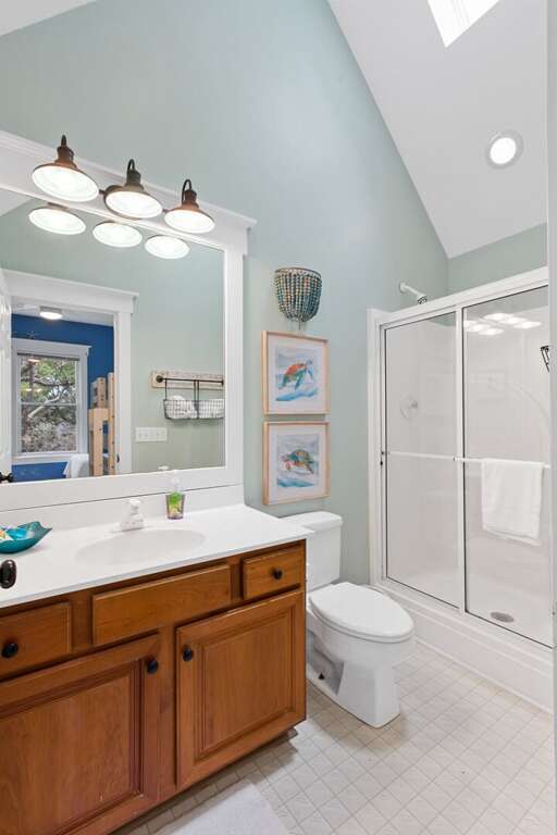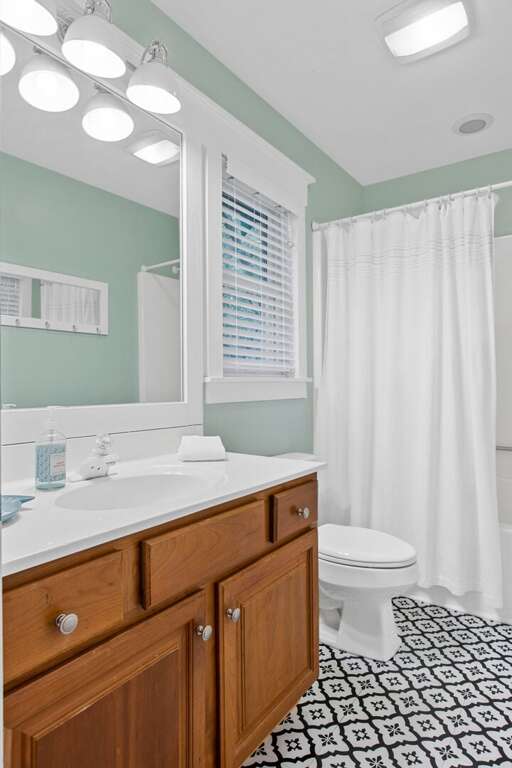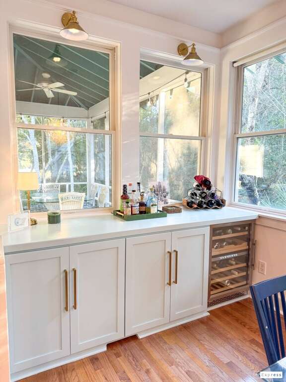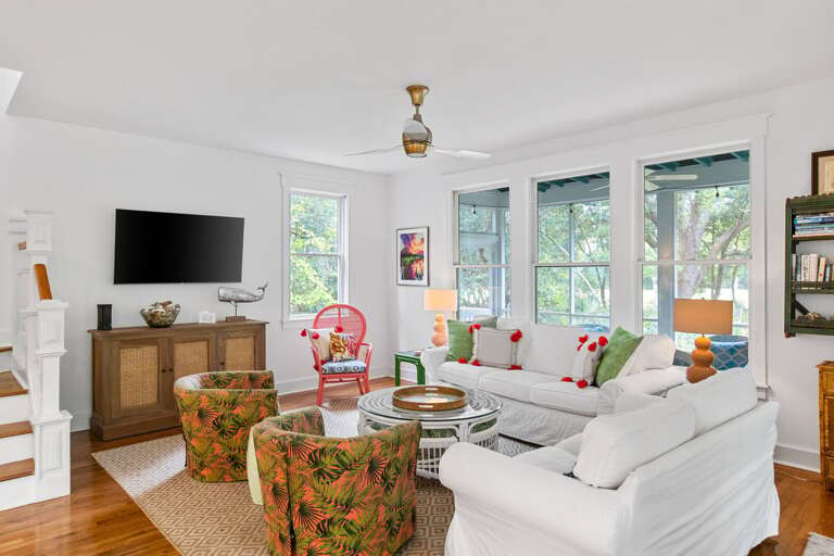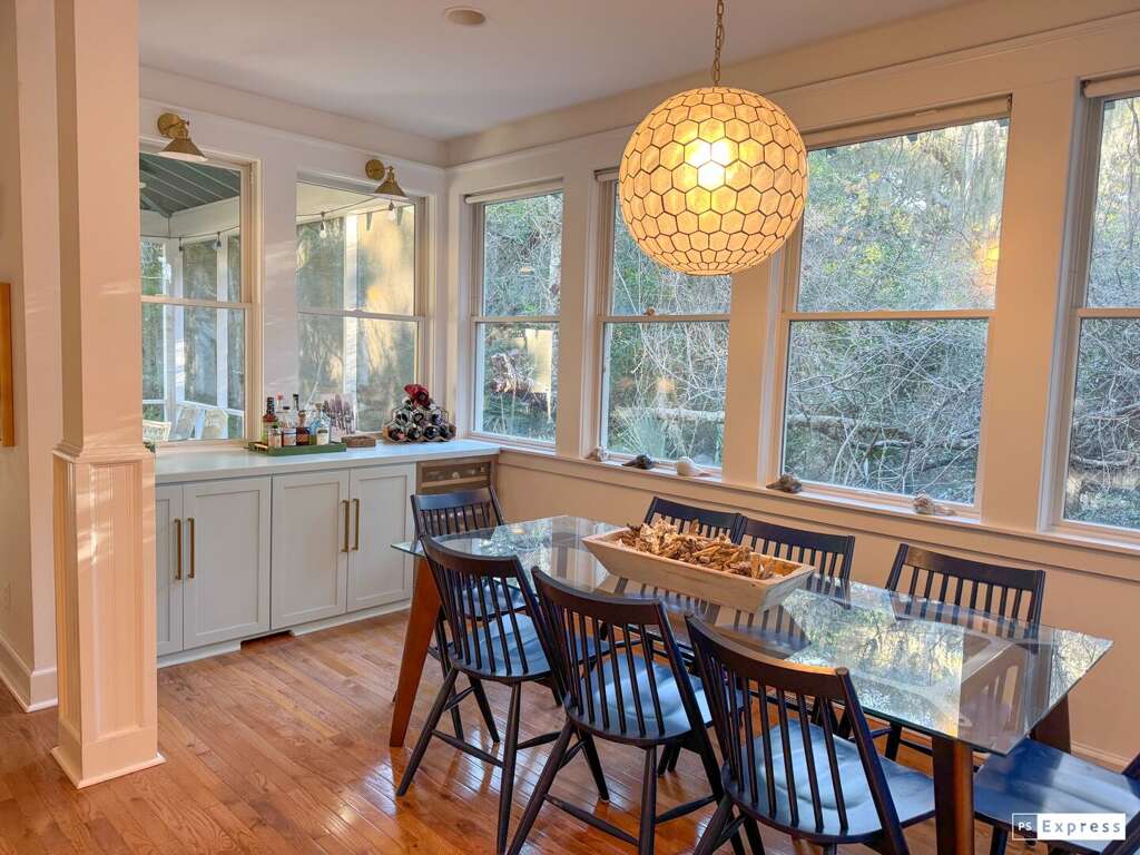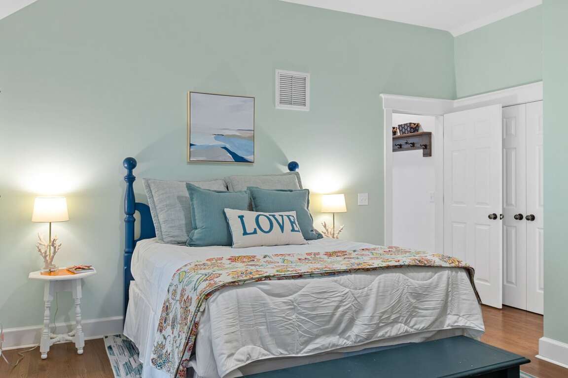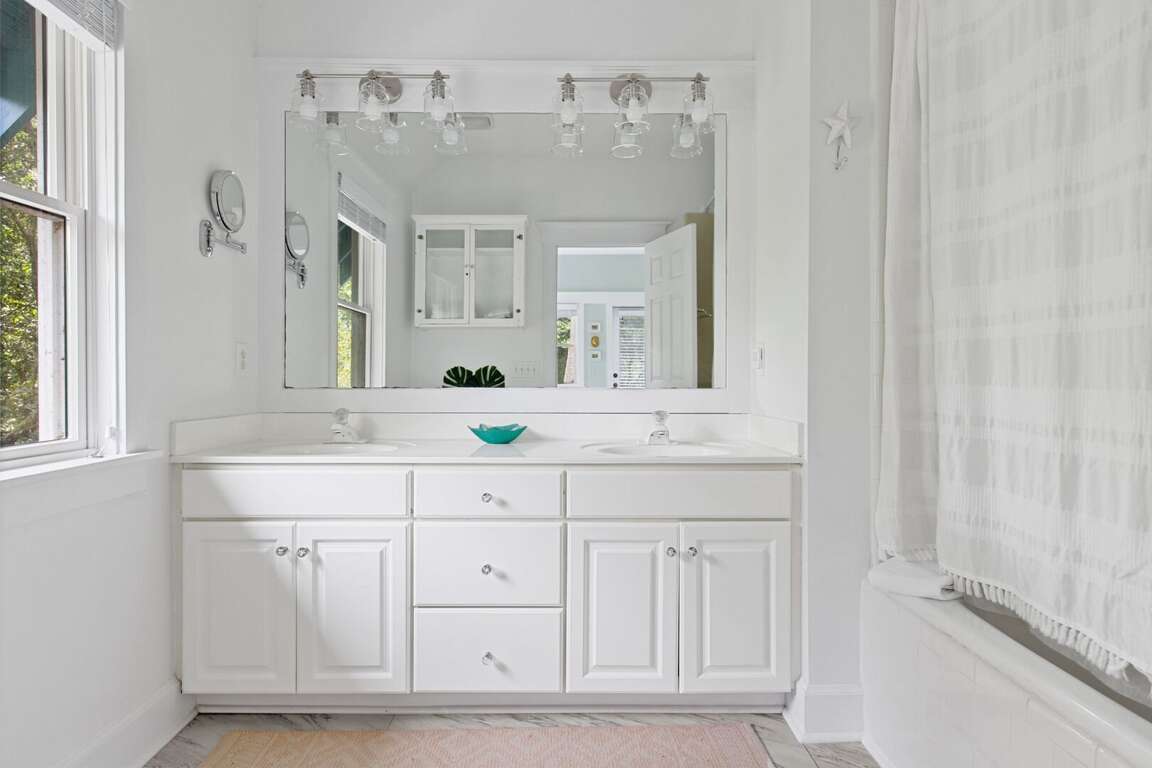 We invite you to experience the tranquility and comfort of our three-bedroom, three-bath home nestled on the lush greens of Bald Head Island's golf course. Each room comes equipped with its own bathroom, ensuring your comfort and privacy. The heart of the house is a spacious open-concept living, dining, and kitchen area on the ground floor. The screened porch is the perfect spot to sip your morning coffee while taking in the stunning course views and local wildlife. One of the bedrooms, featuring a queen bed and an attached bathroom with a tub/shower combo, is located downstairs for easy accessibility. The upper level houses two more bedrooms. One is a perfect haven for kids with a bunk bed and an additional twin bed, while the other boasts a king bed, a generous dual-sink vanity, and a shower tub combo. This master room also has its very own serene balcony with inspiring views of the surrounding greenery. And for a bit of fun, feel free to explore the island using either our 4 or 6 passenger golf cart.
